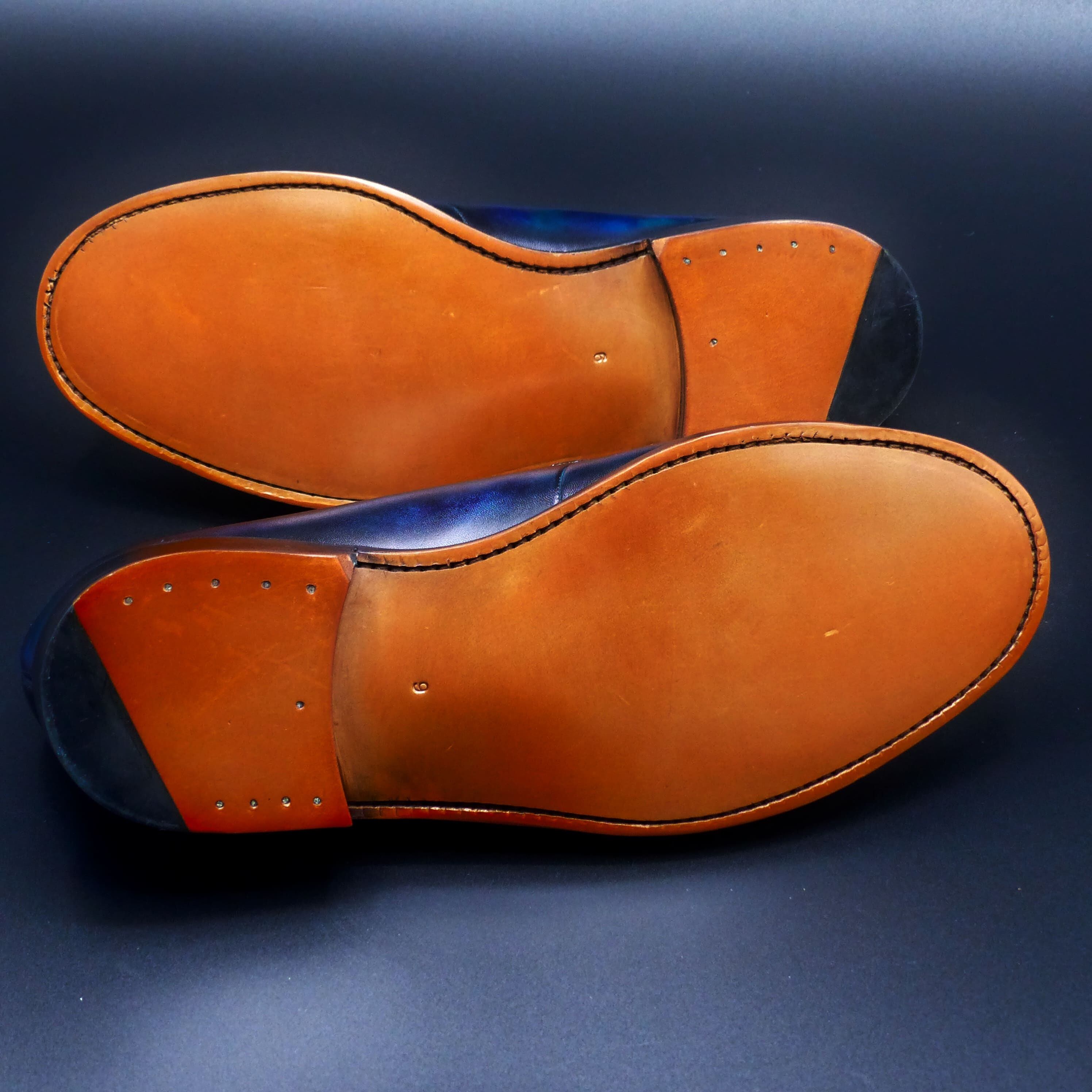 4)シューケア用品を使用する際は、必ず目立たない部分でお試しいただき、その後ご使用ください。また、お客様自身の作業によって生じた色落ちなどについては、弊社では保証できかねますので、ご注意ください。