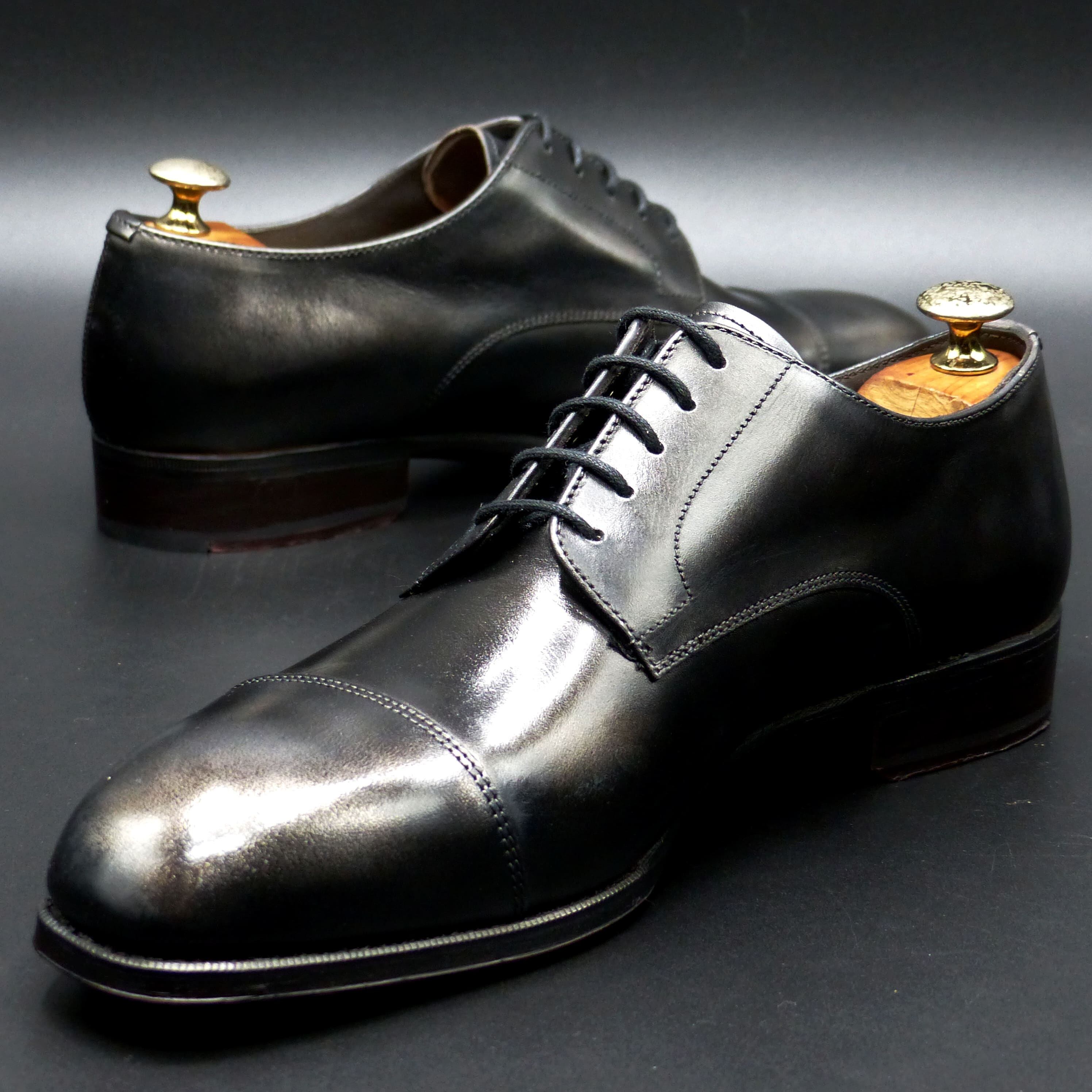 黒鉄(くろがね)色のダービー・ストレートチップ。