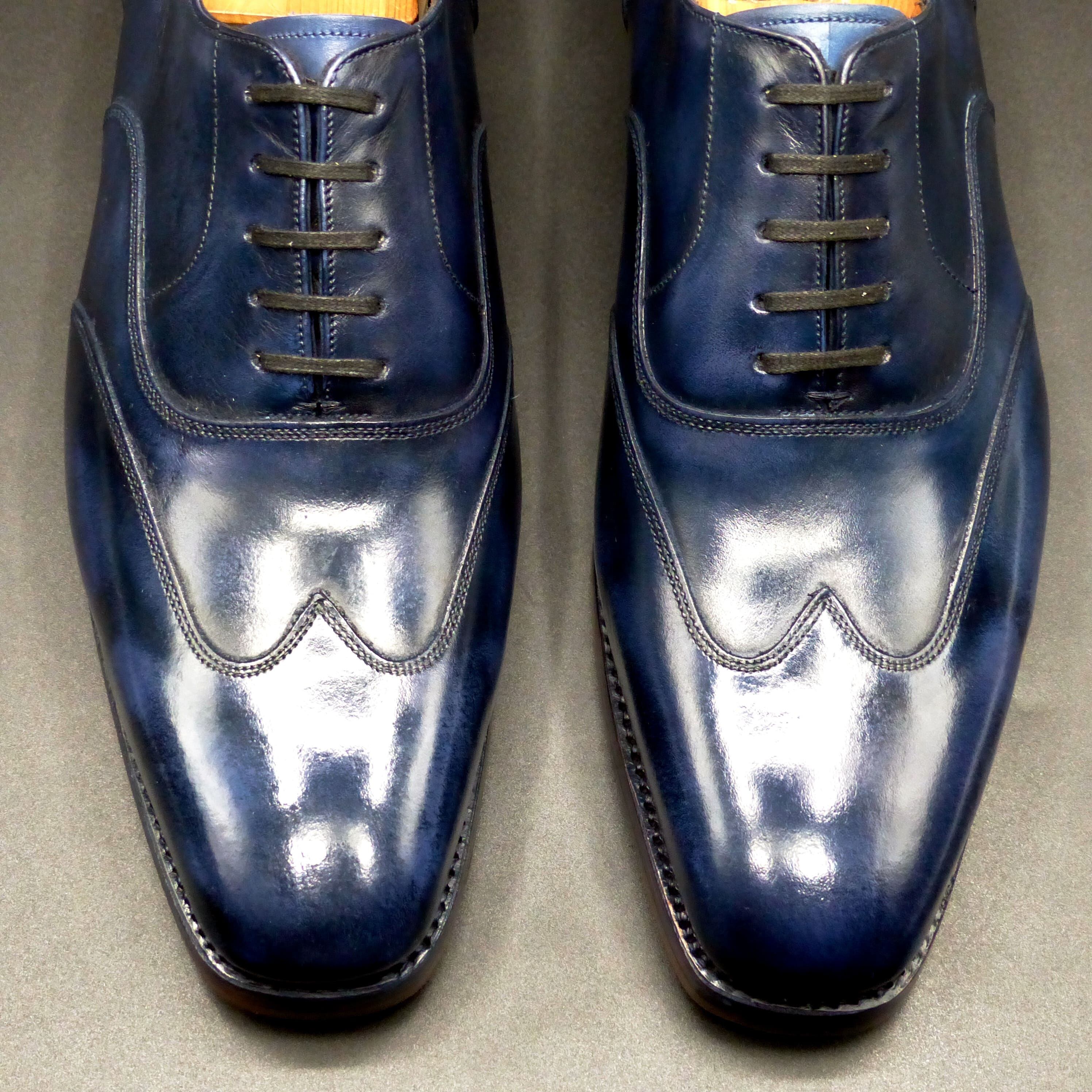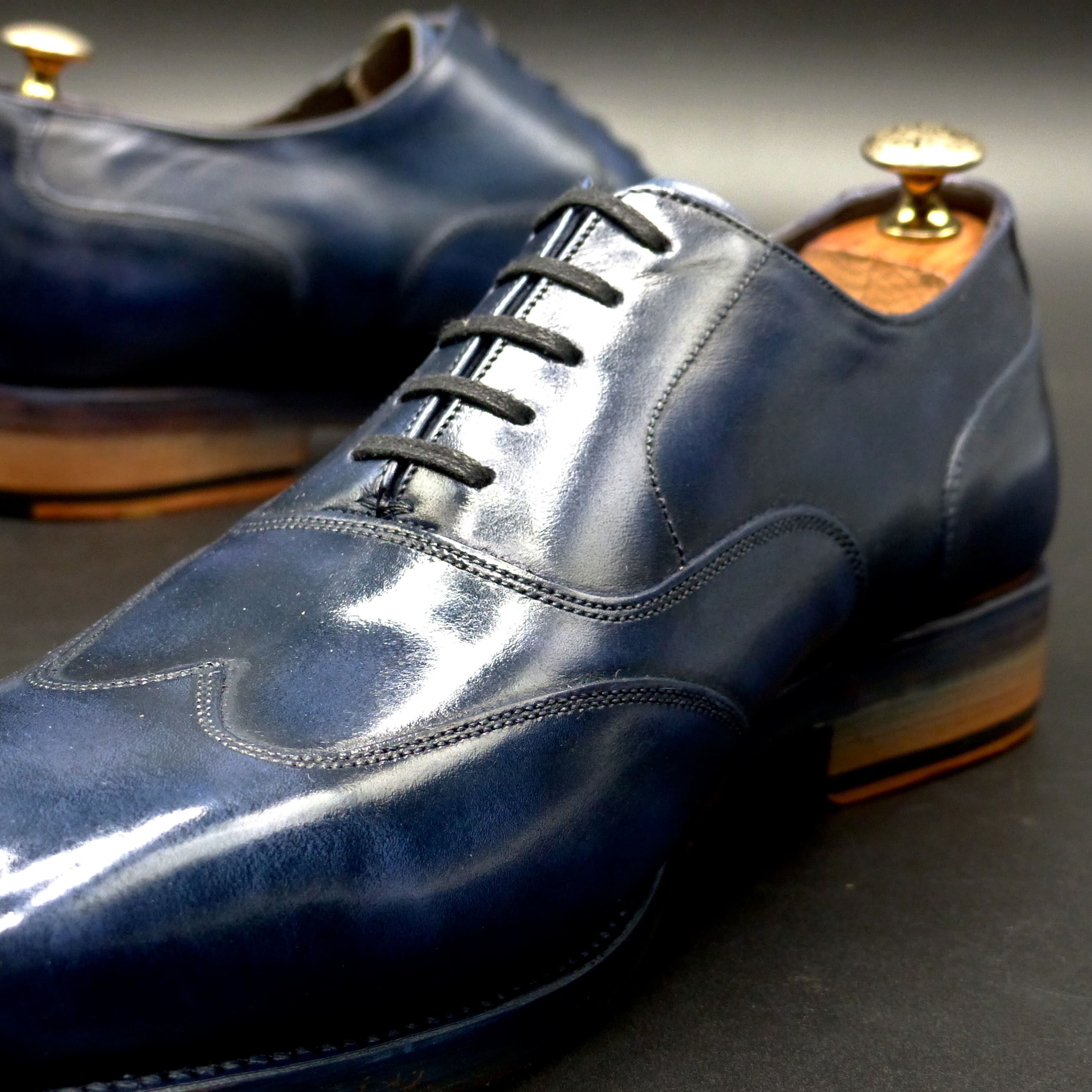 【360°チャネリング・グッドイヤー製法】WDS-003 26.0cm オーステリティ 世界で1足 群青 伝統色パティーヌ仕上げ レザーWアウトソール レザー積み上げヒール