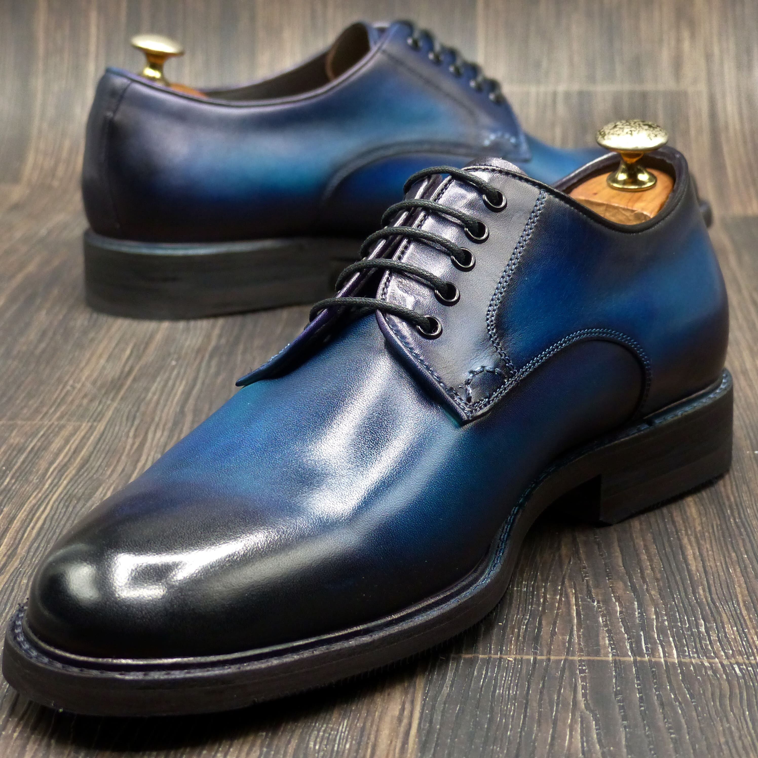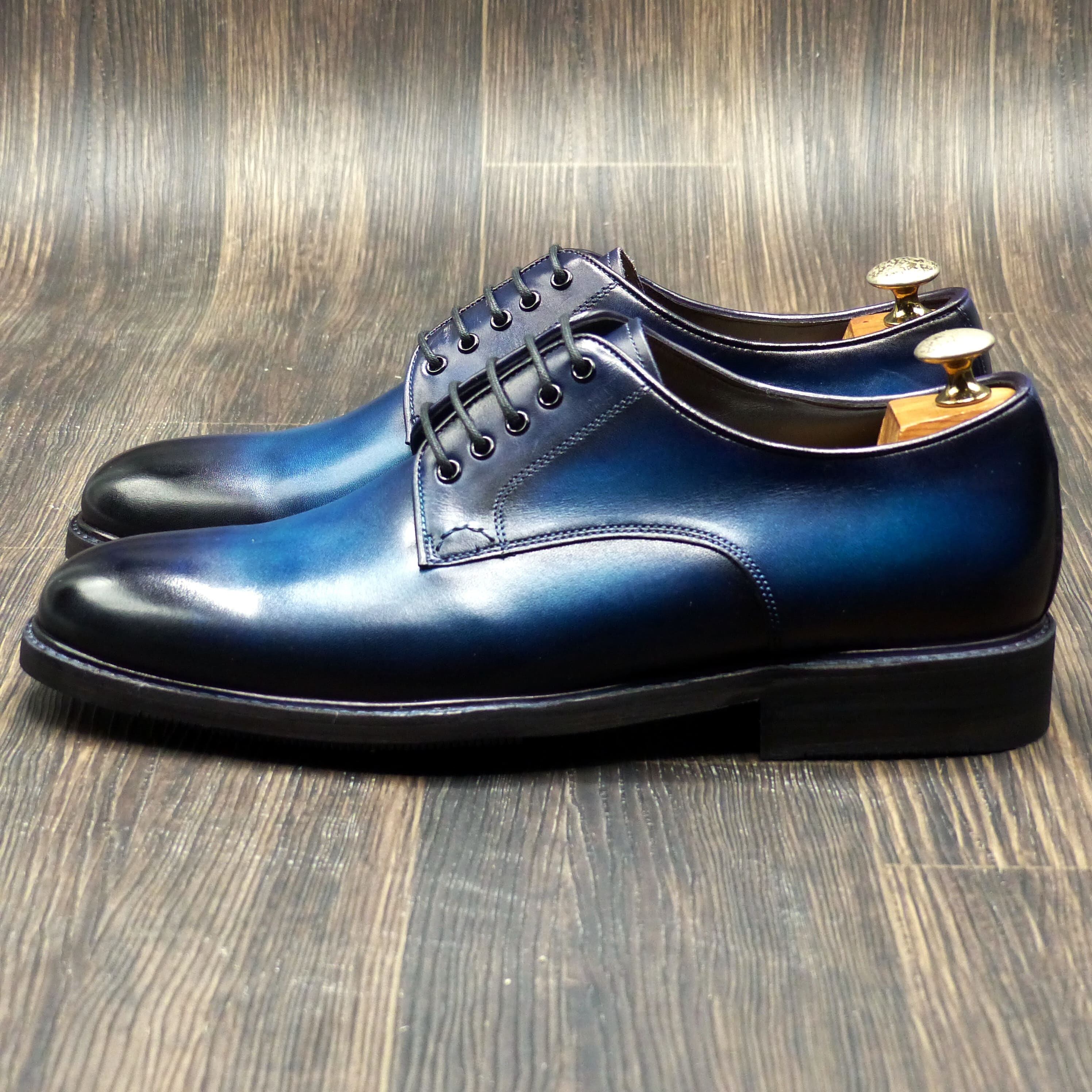 「青霞(あおがすみ)」は、群青から鉄紺、瑠璃色に至るまで、青のすべてを重ねたようなグラデーションが特徴のパティーヌ仕上げ。
