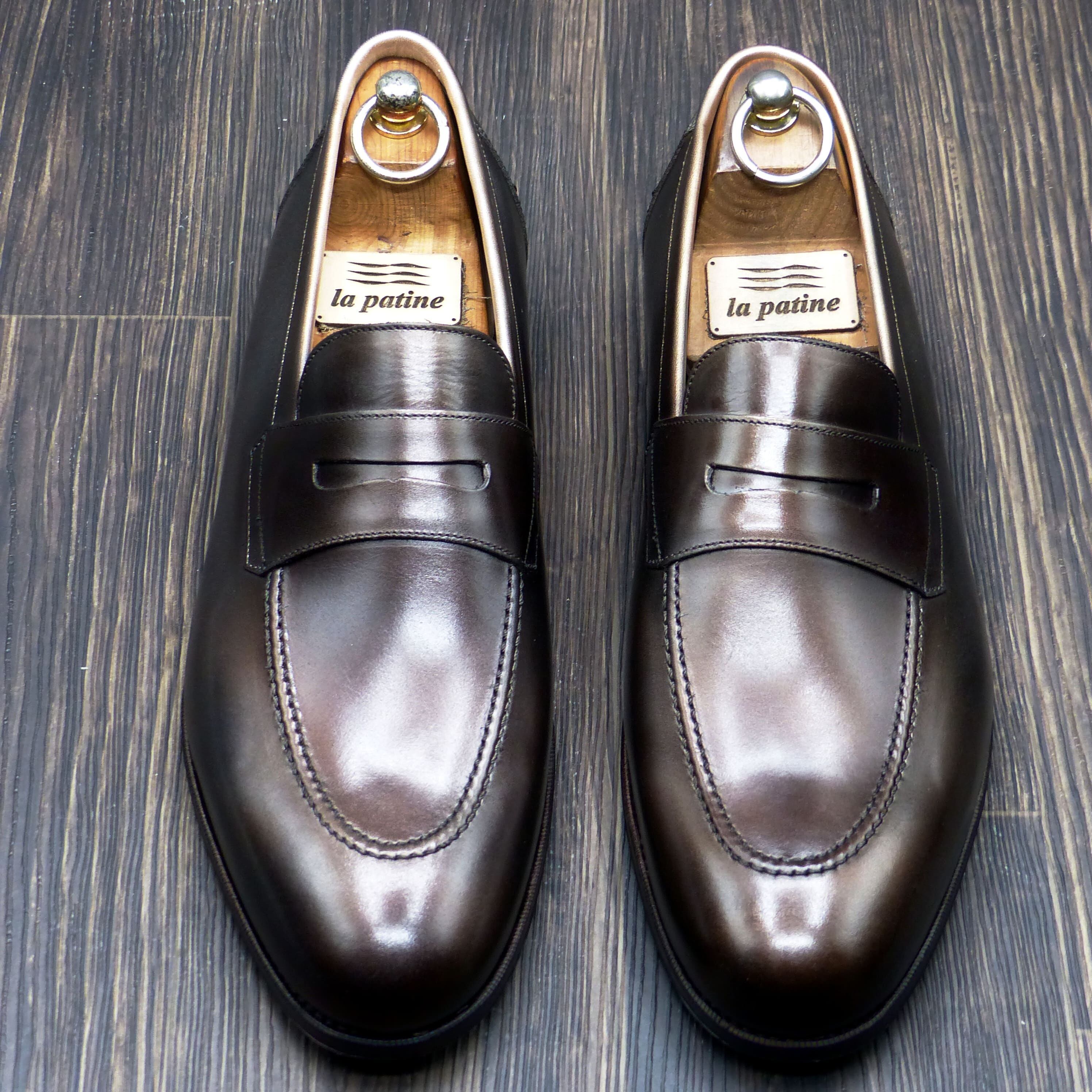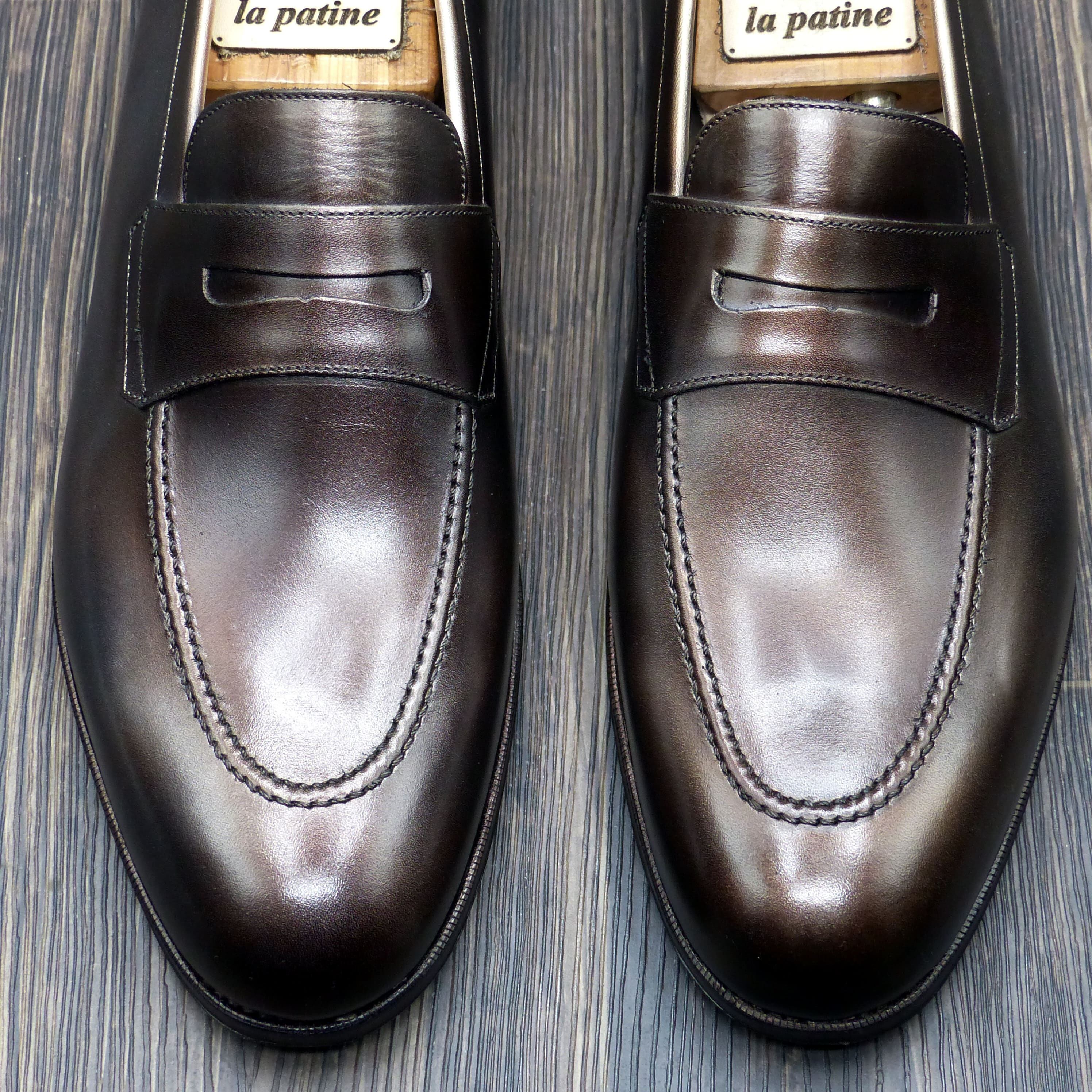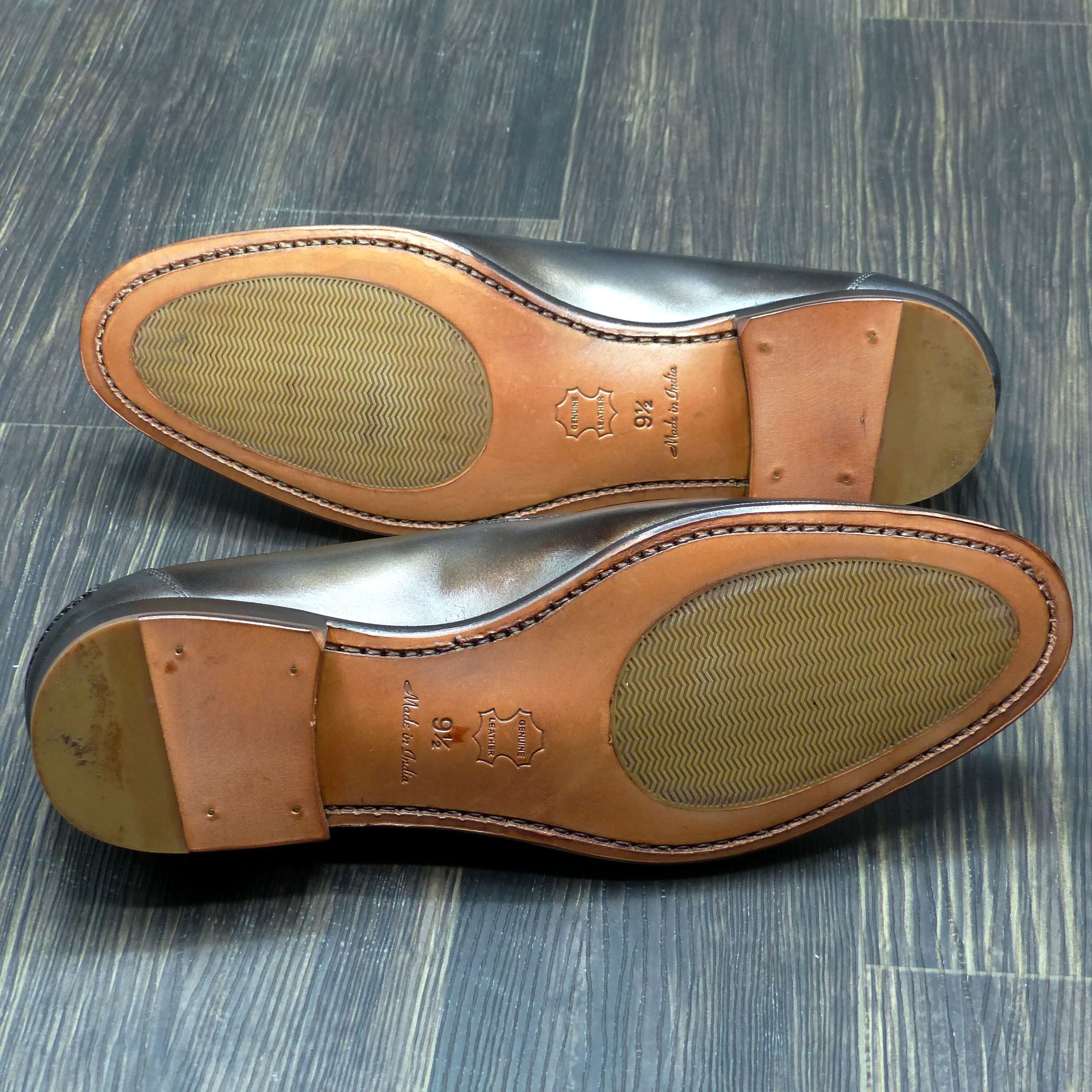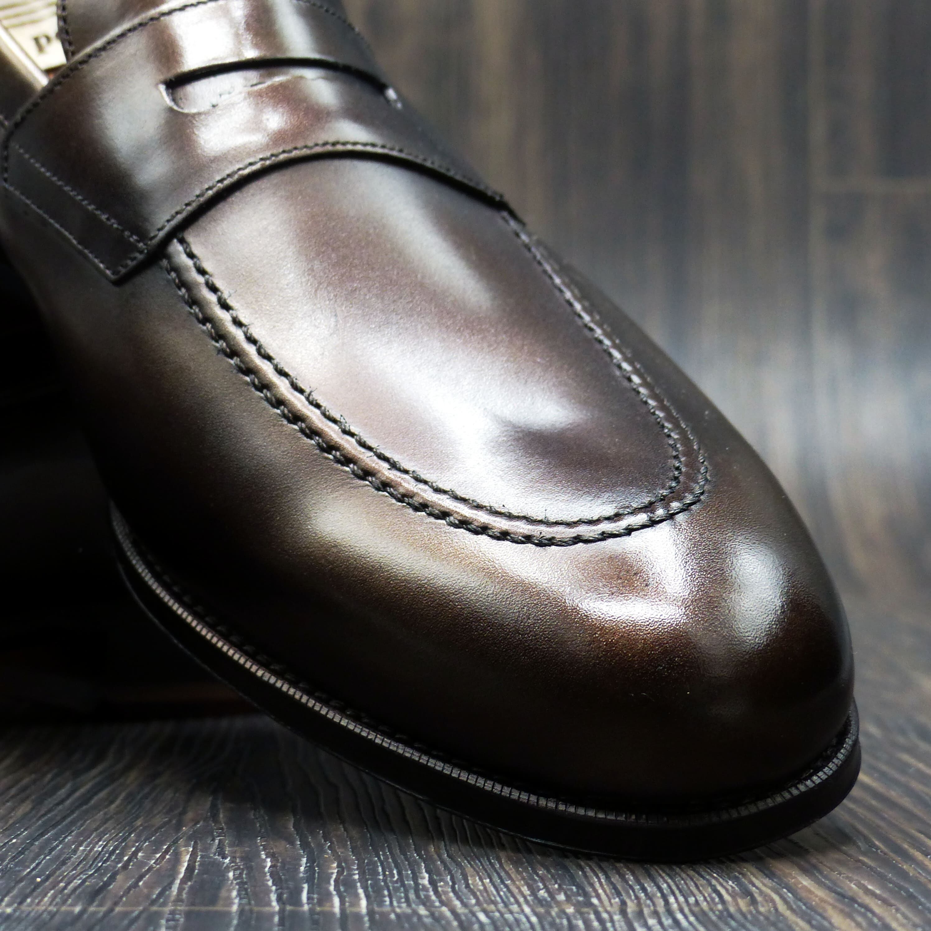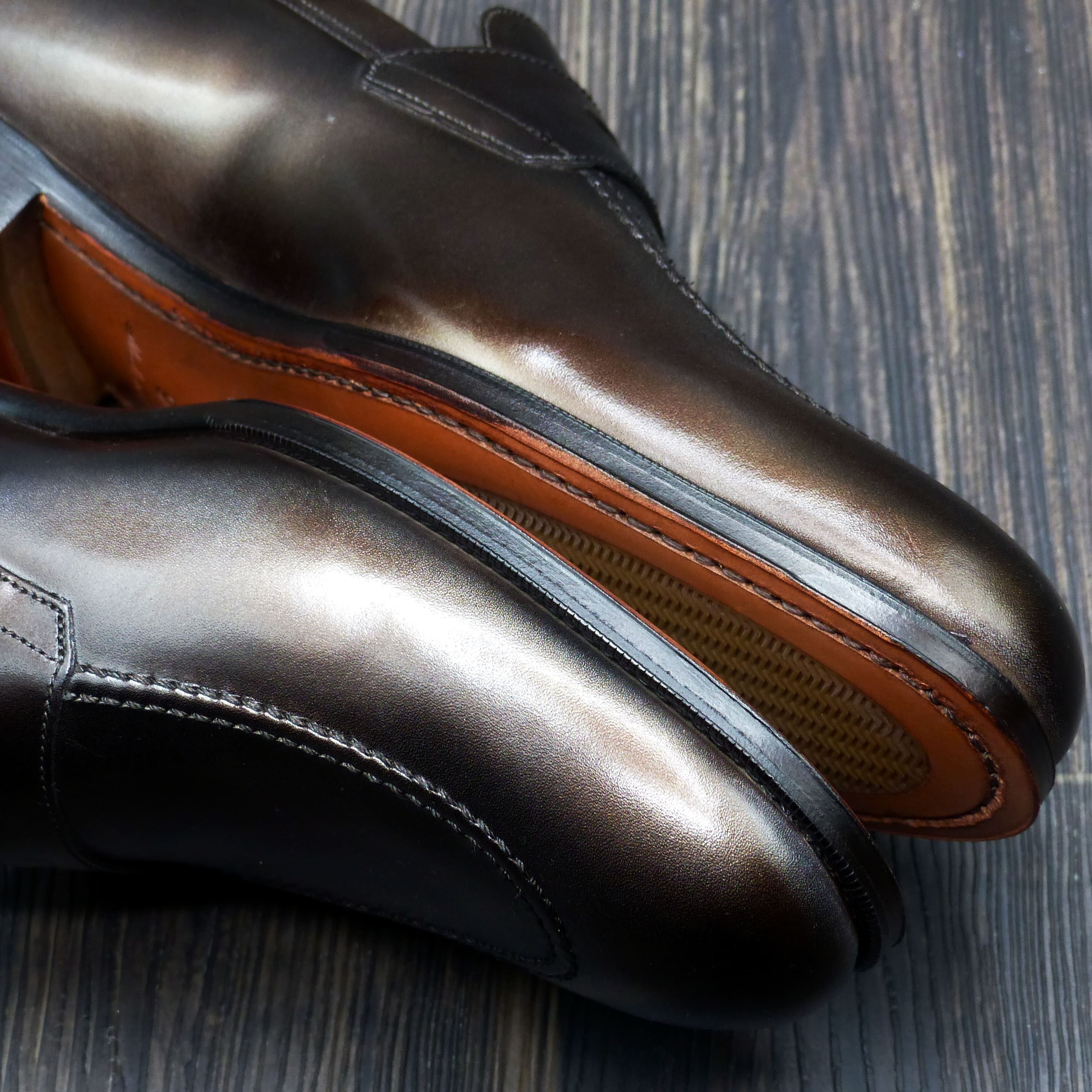 4)シューケア用品を使用する際は、必ず目立たない部分でお試しいただき、その後ご使用ください。また、お客様自身の作業によって生じた色落ちなどについては、弊社では保証できかねますので、ご注意ください。