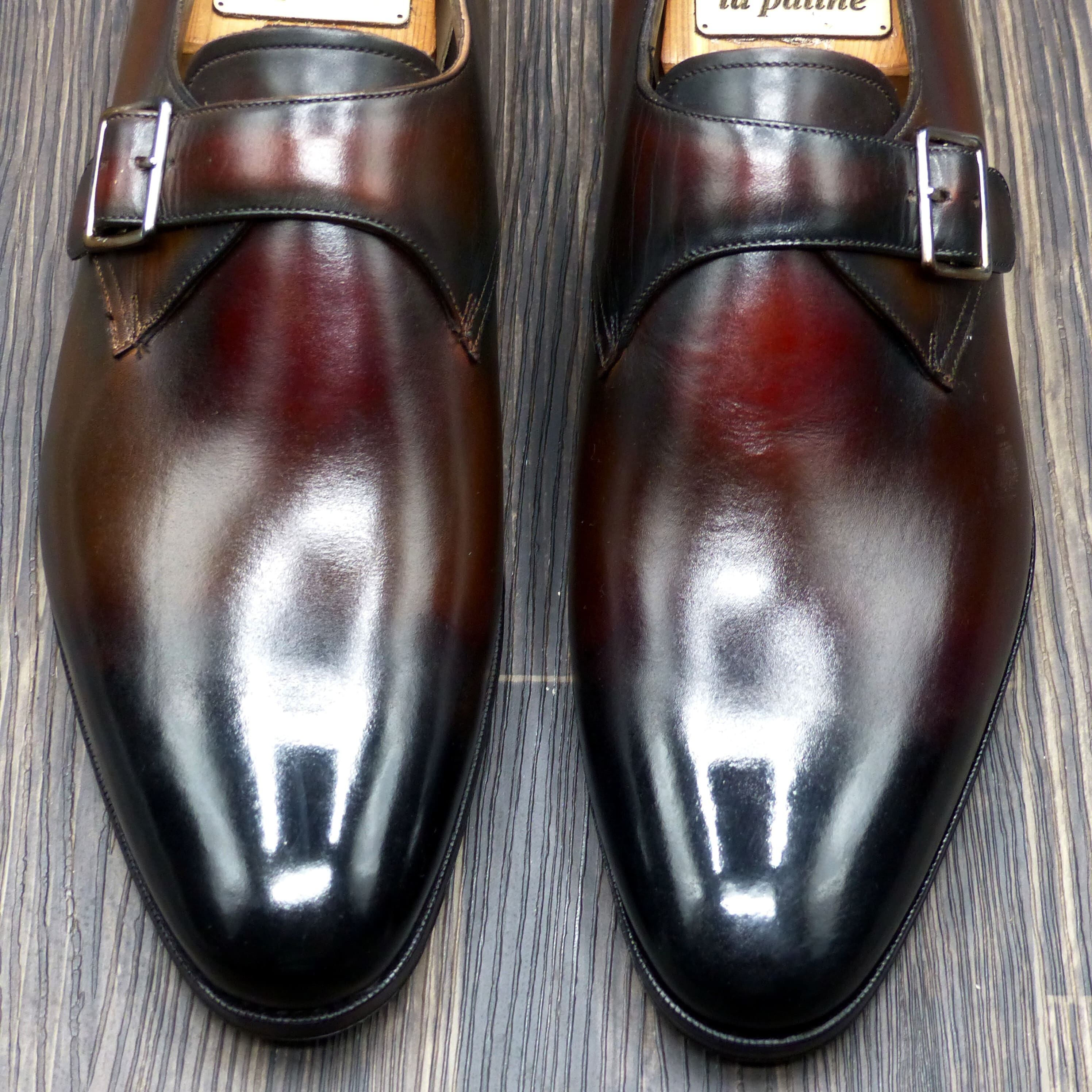 4)シューケア用品を使用する際は、必ず目立たない部分でお試しいただき、その後ご使用ください。また、お客様自身の作業によって生じた色落ちなどについては、弊社では保証できかねますので、ご注意ください。