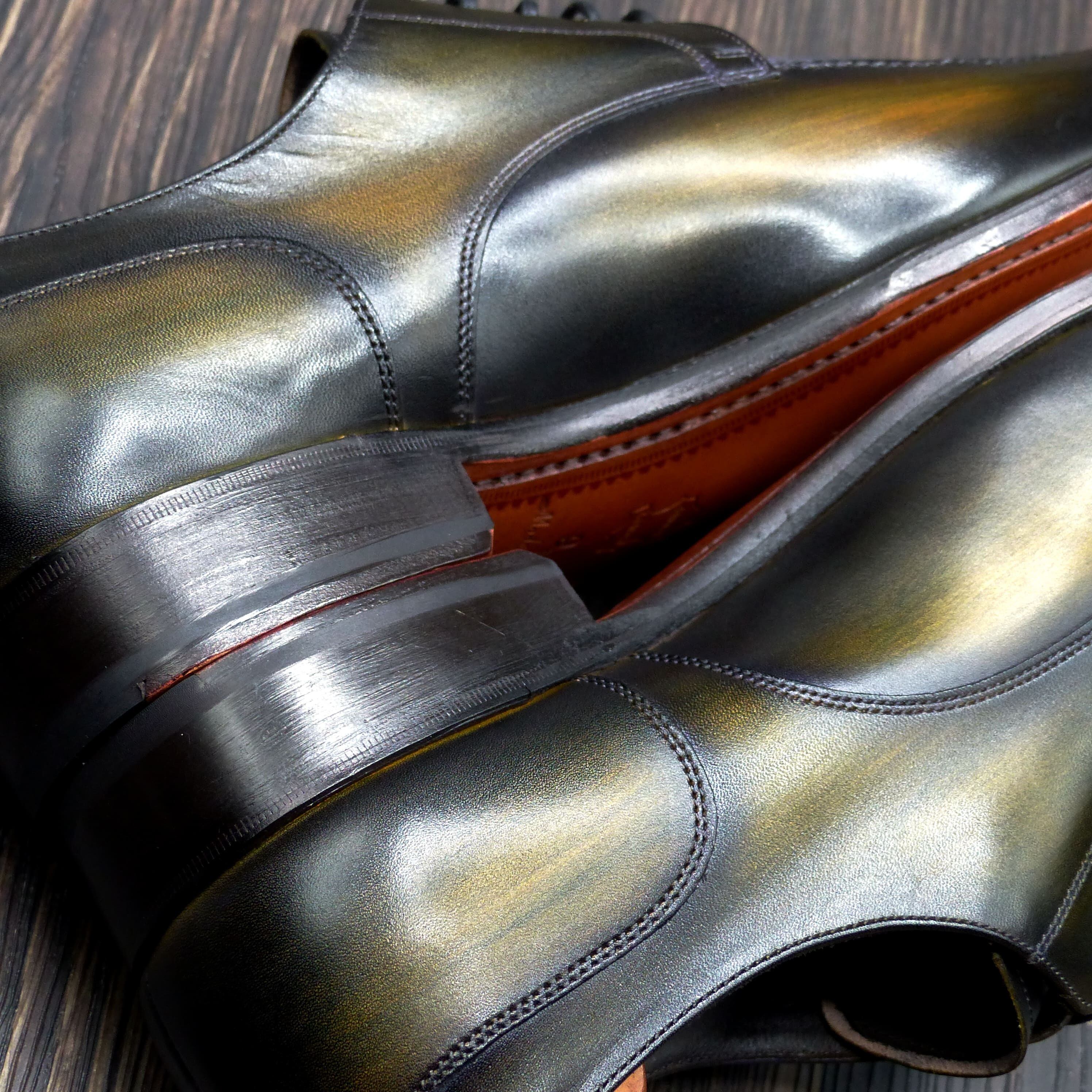 「黒にも見える、緑にも見える―― 静謐な陰影を纏う一足。」