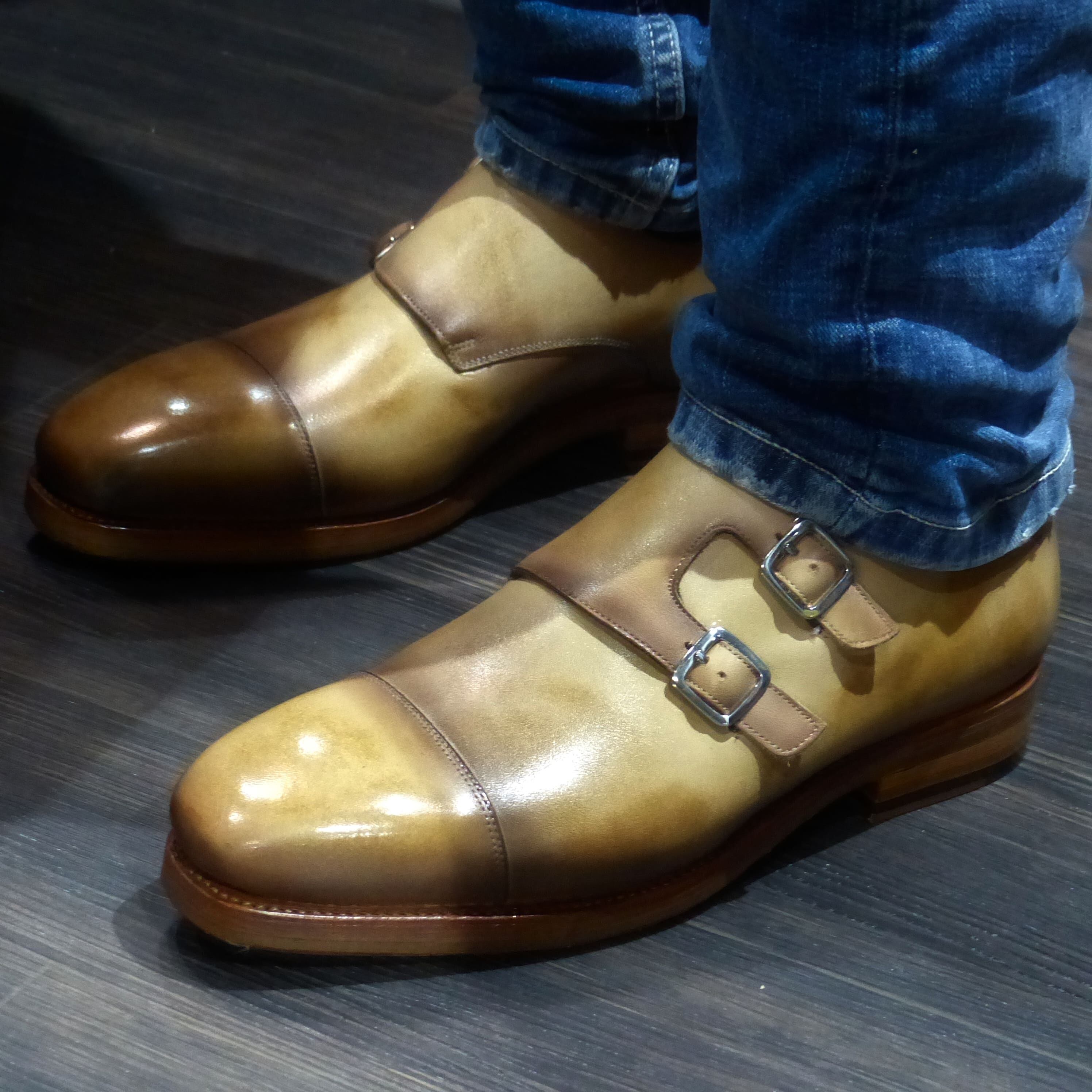 【360°チャネリング・グッドイヤー製法】WDS-004 25.5cm 世界で1足 重ね染めパティーヌ仕上げ Wモンク レザーWアウトソール レザー積み上げヒール