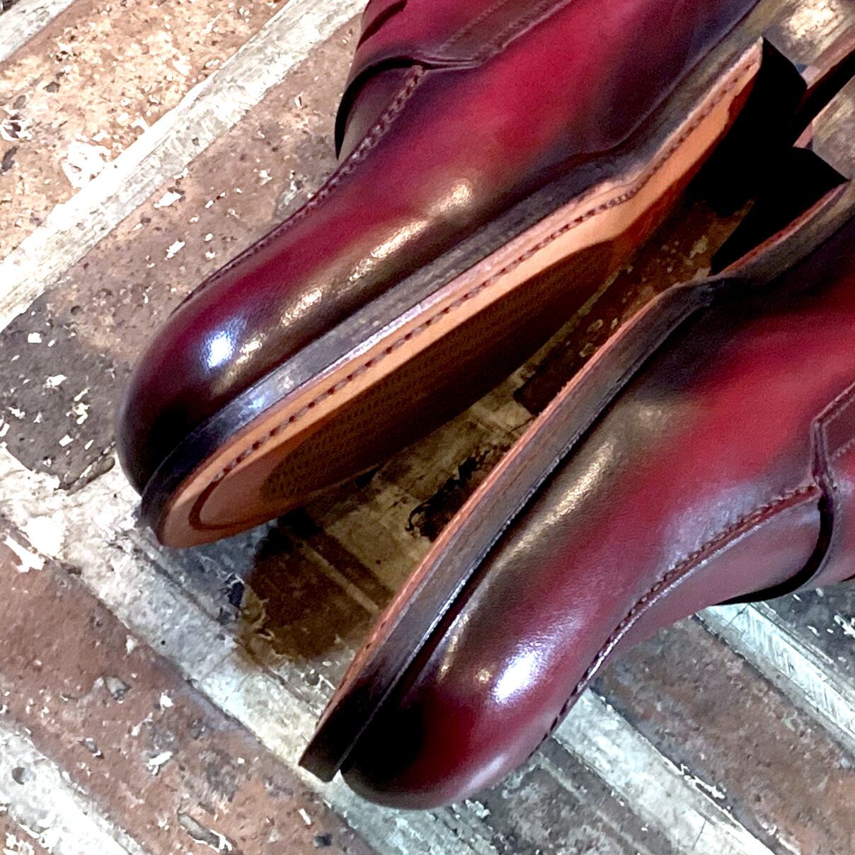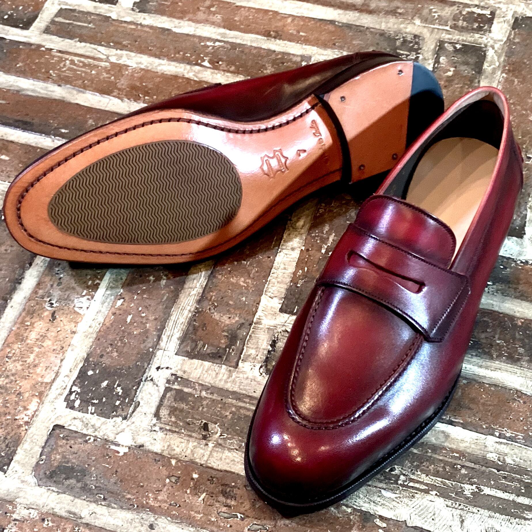 【3Dパターン・フルマッケイ製法】FL-400 25.0cm 世界で1足 重ね染めパティーヌ仕上げ コインローファー