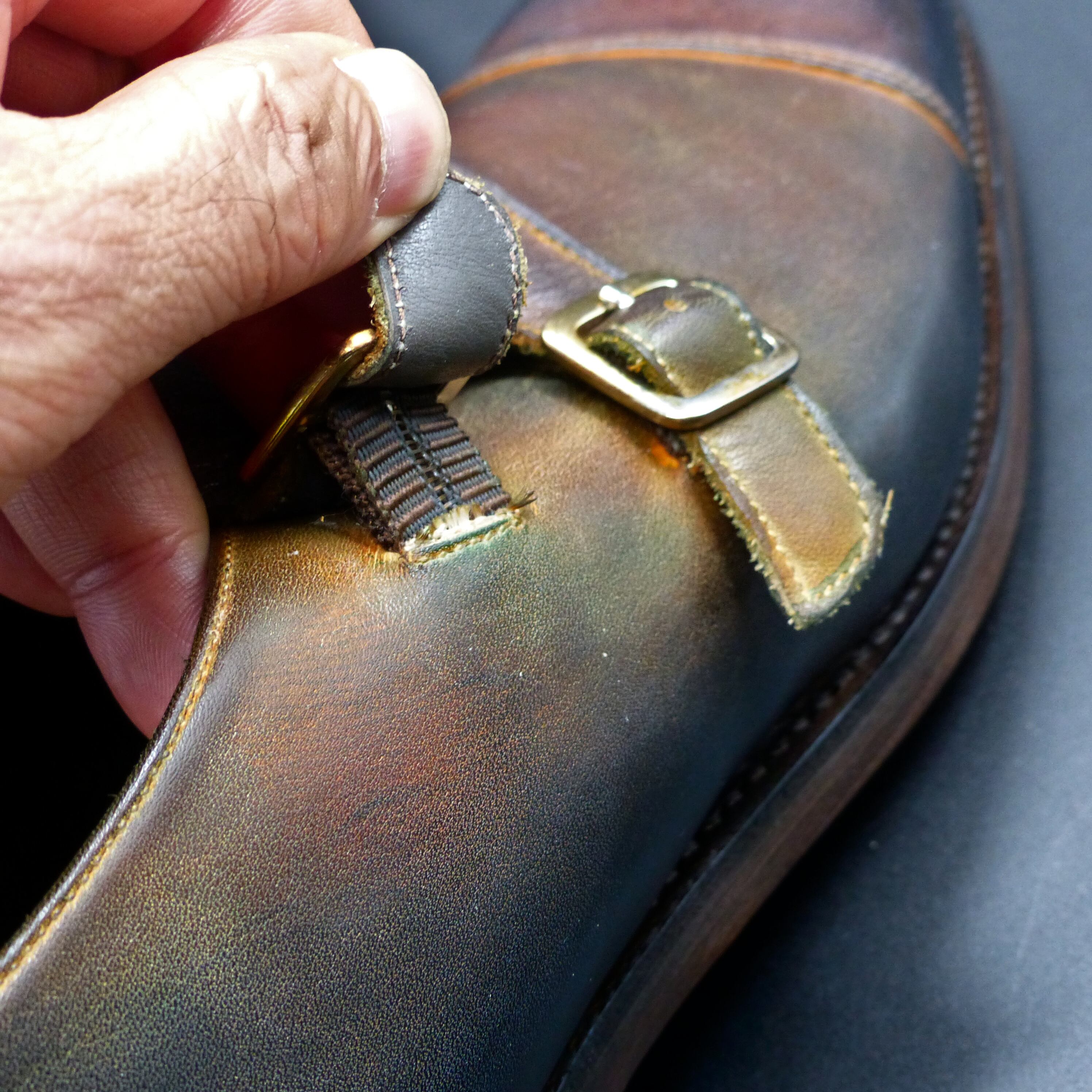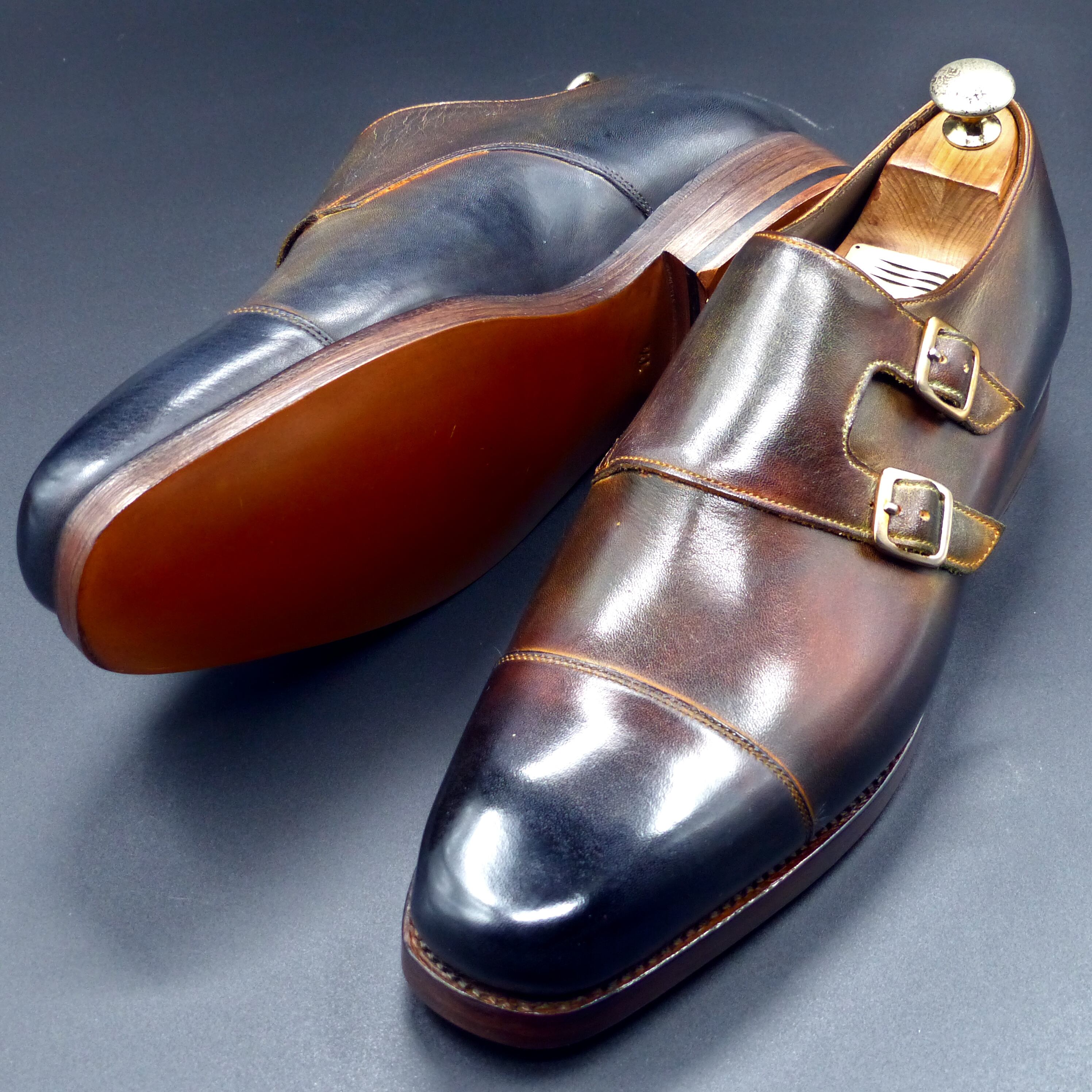 【360°チャネリング・グッドイヤー製法】WDS-004 25.5cm 世界で1足 重ね染めパティーヌ仕上げ Wモンク レザーWアウトソール レザー積み上げヒール