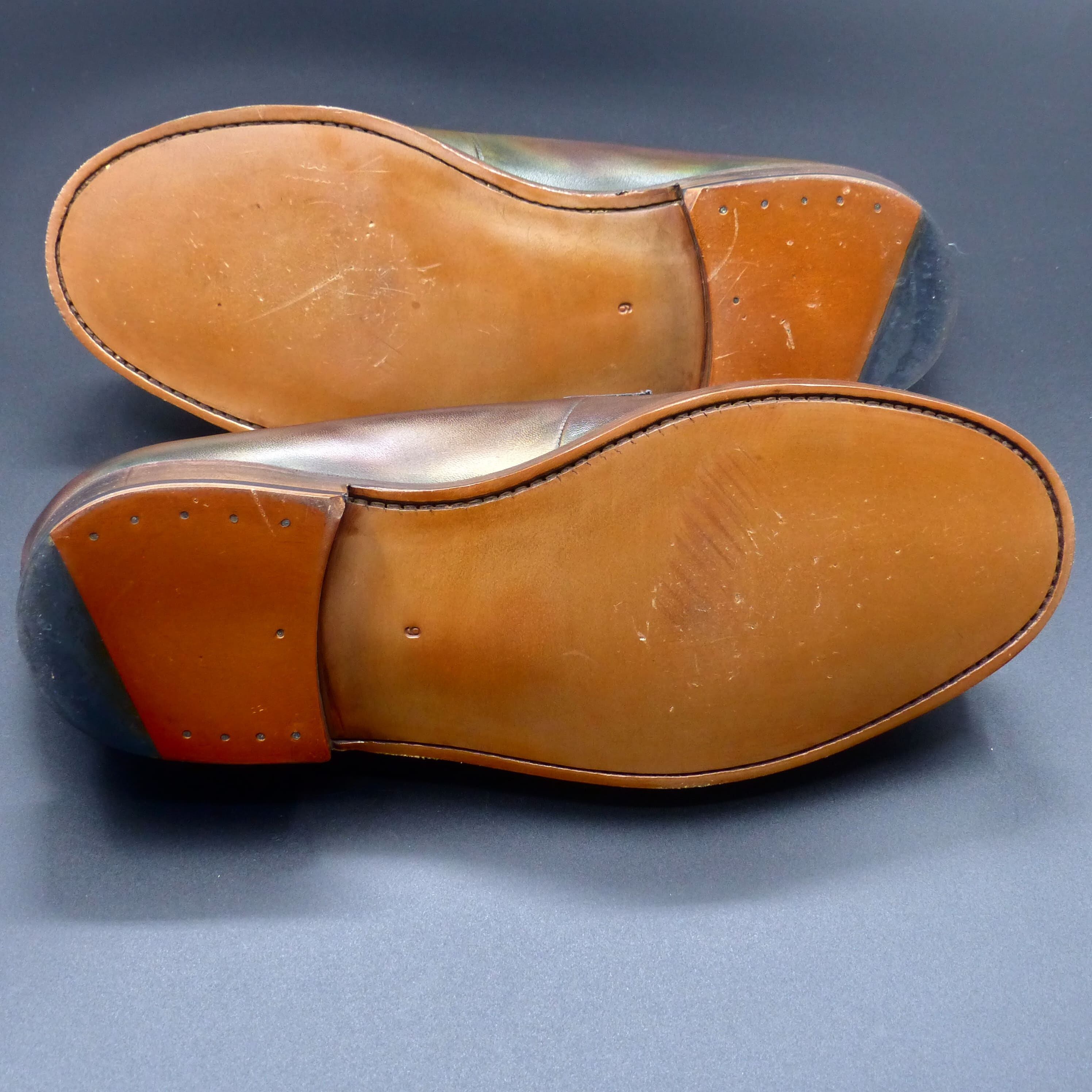 4)シューケア用品を使用する際は、必ず目立たない部分でお試しいただき、その後ご使用ください。また、お客様自身の作業によって生じた色落ちなどについては、弊社では保証できかねますので、ご注意ください。