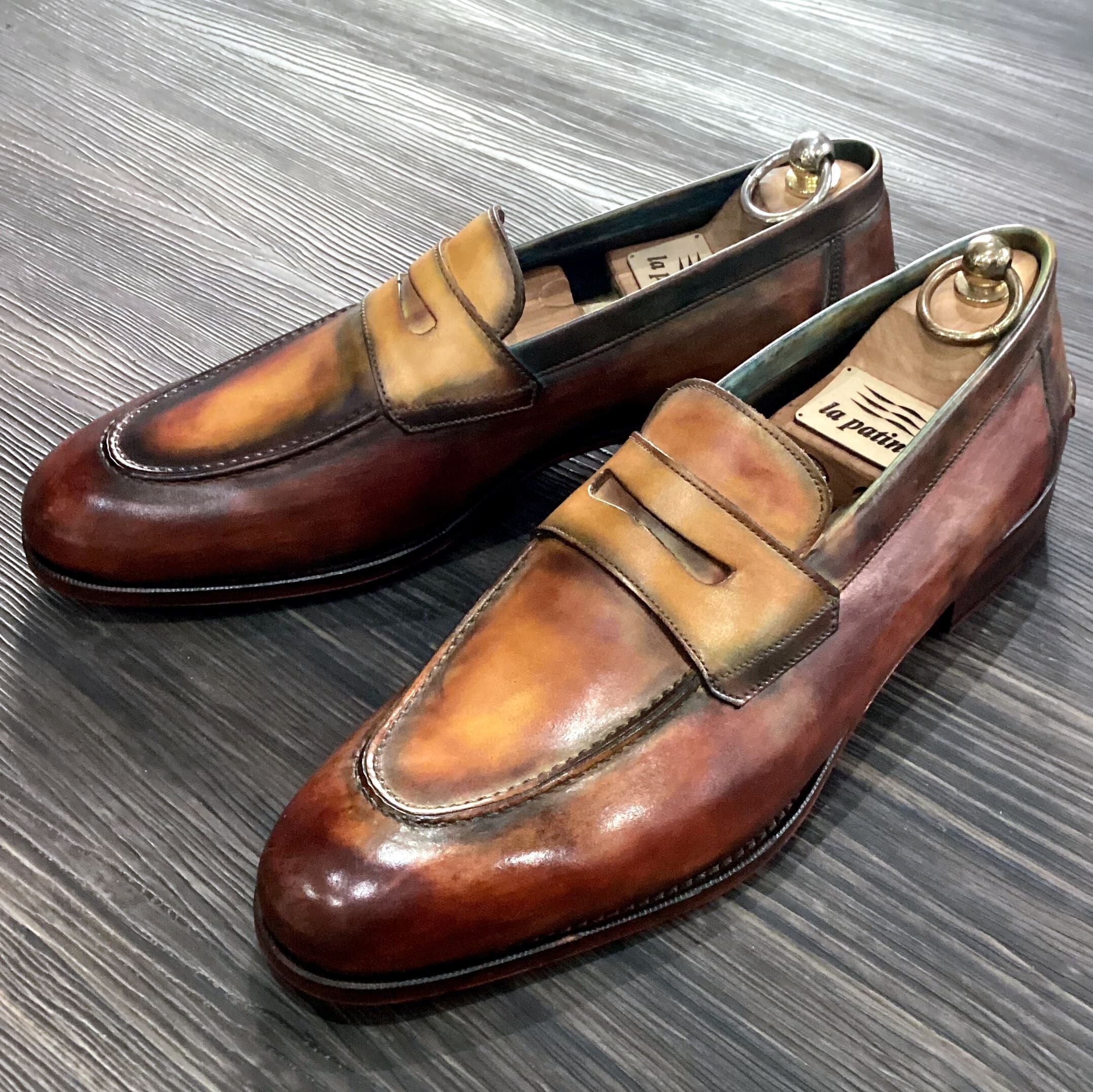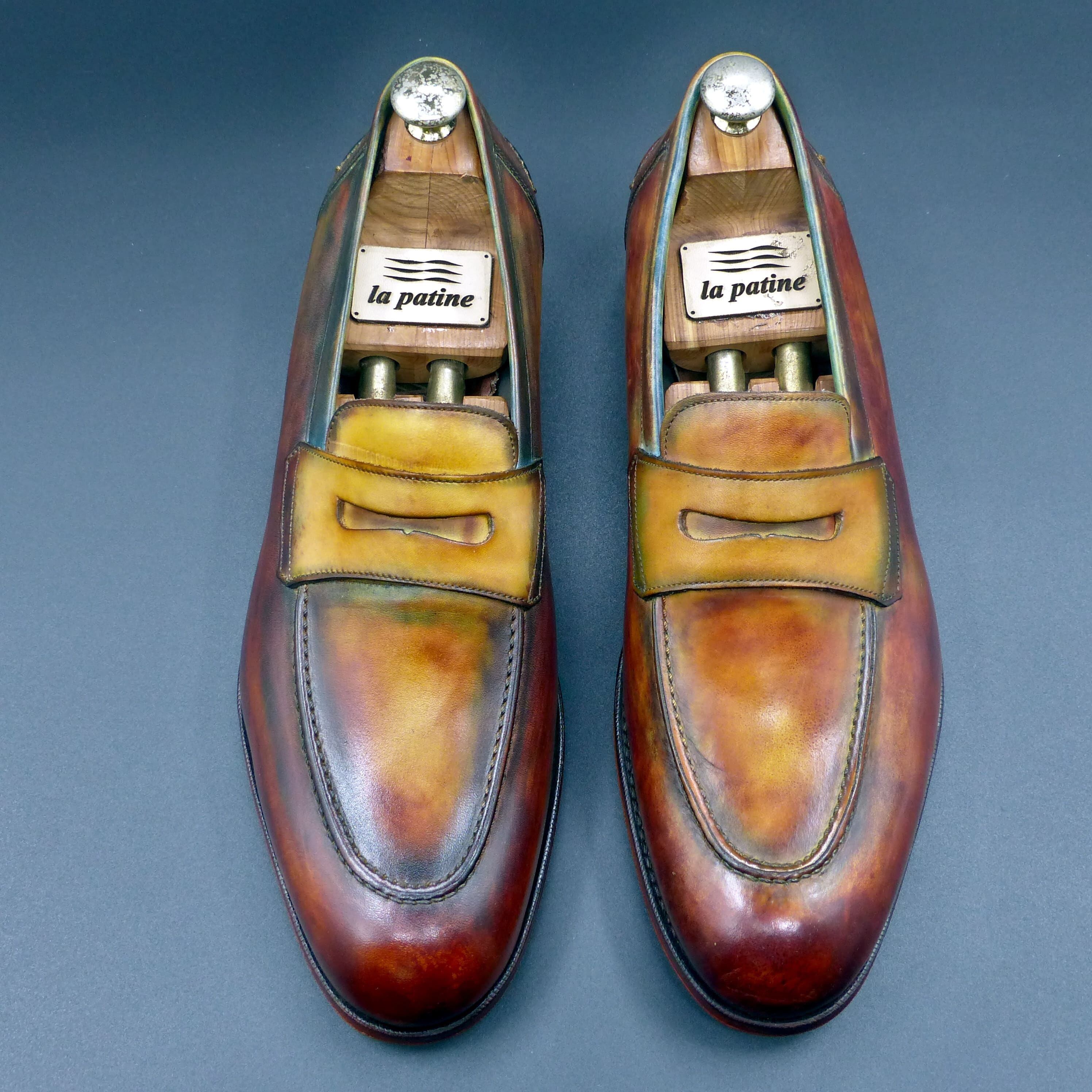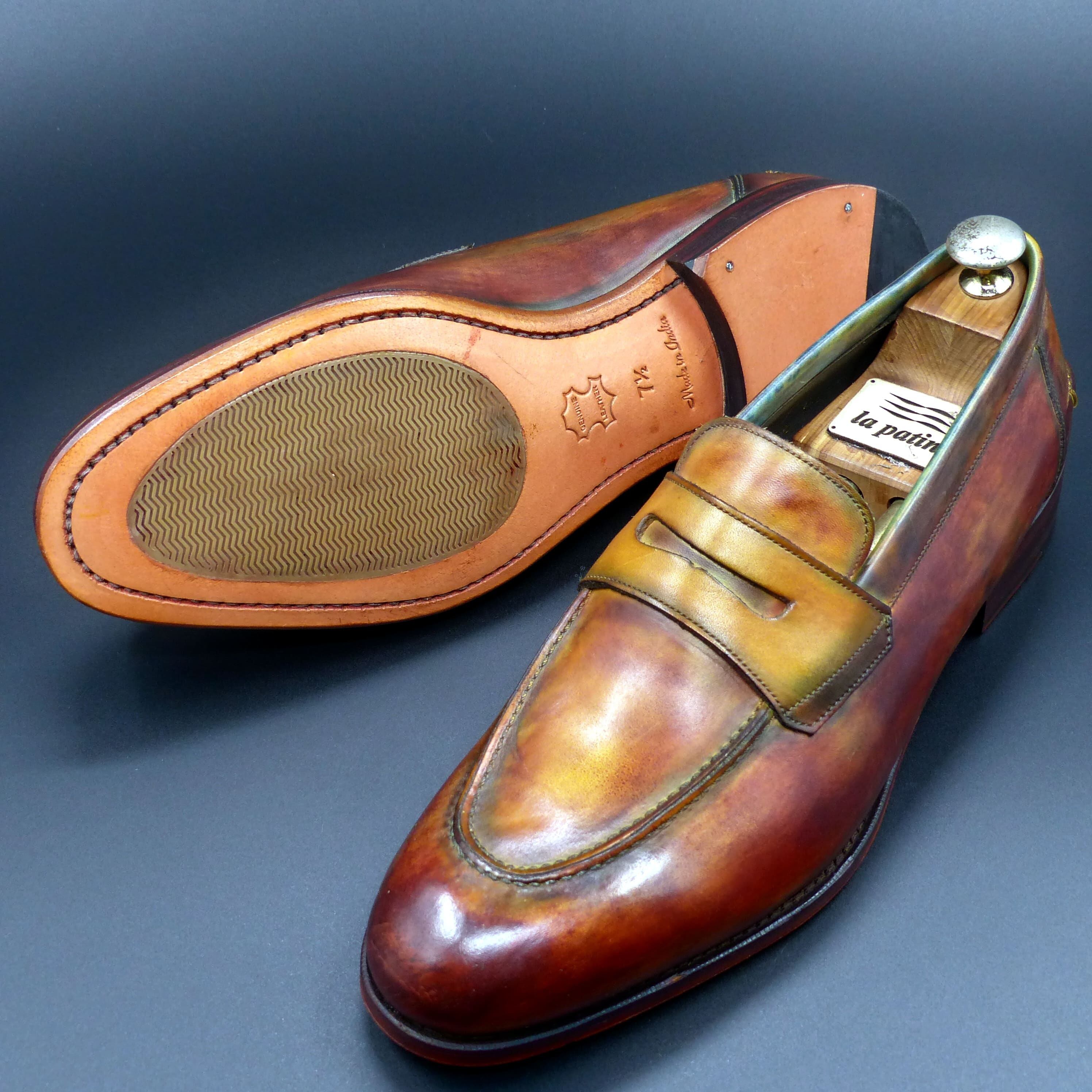 4)シューケア用品を使用する際は、必ず目立たない部分でお試しいただき、その後ご使用ください。また、お客様自身の作業によって生じた色落ちなどについては、弊社では保証できかねますので、ご注意ください。