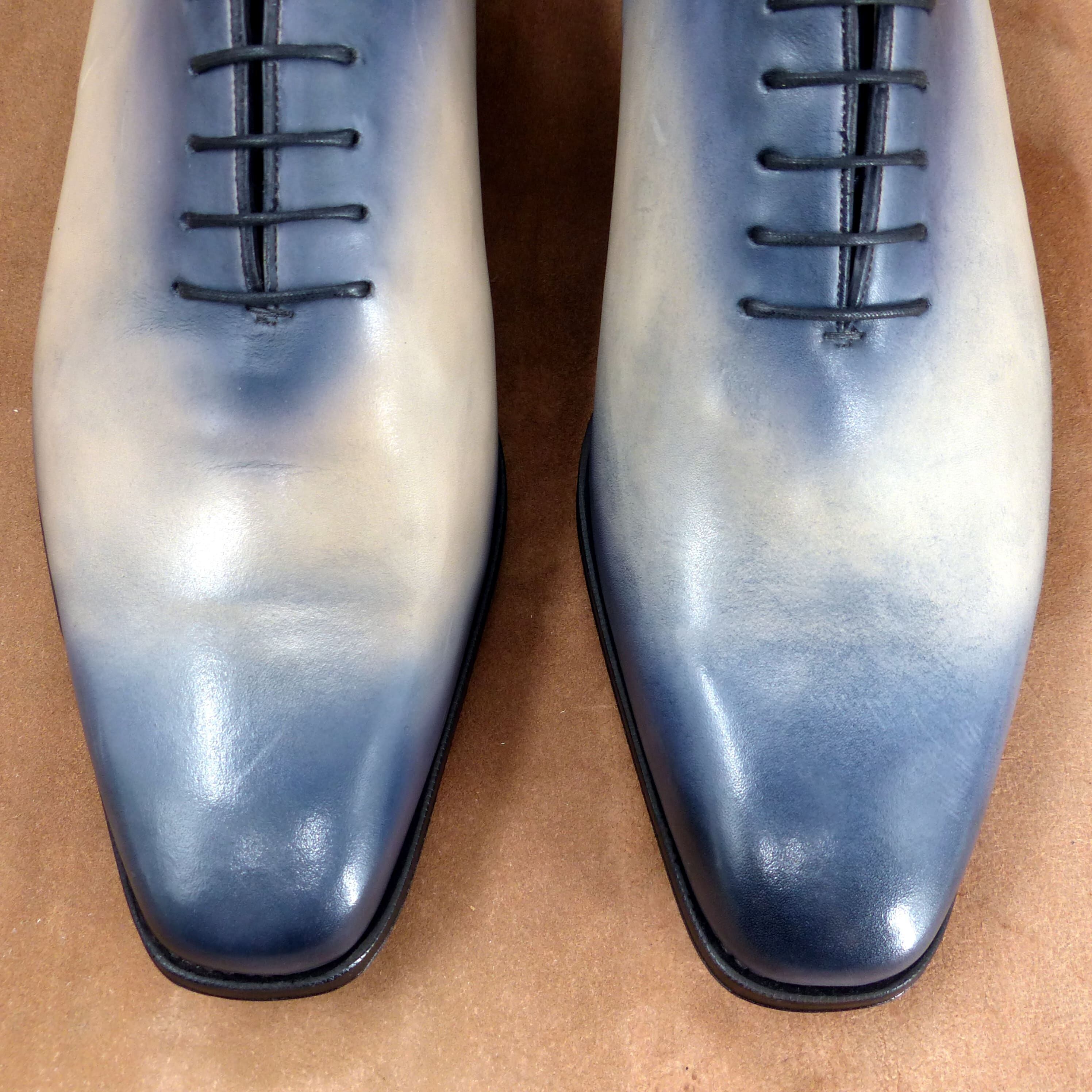4)シューケア用品を使用する際は、必ず目立たない部分でお試しいただき、その後ご使用ください。また、お客様自身の作業によって生じた色落ちなどについては、弊社では保証できかねますので、ご注意ください。