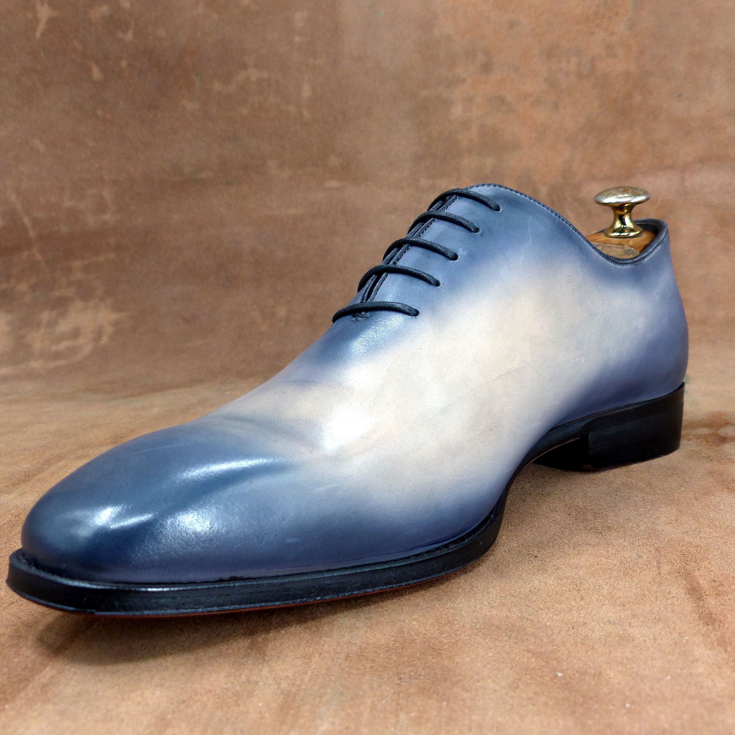 【サンプル・アウトレット】3Dパターン・フルマッケイ製法 FD-100 26.5cm アッシュ・グレイ 世界で1足 重ね染めパティーヌ仕上げ ホールカット
