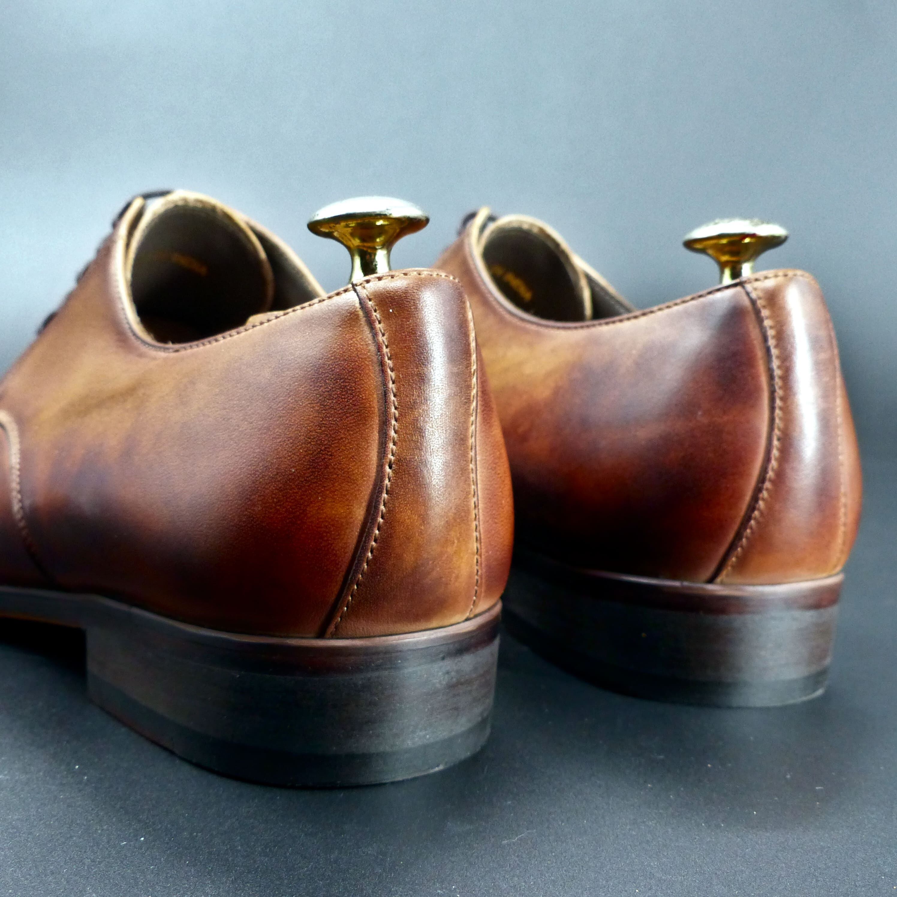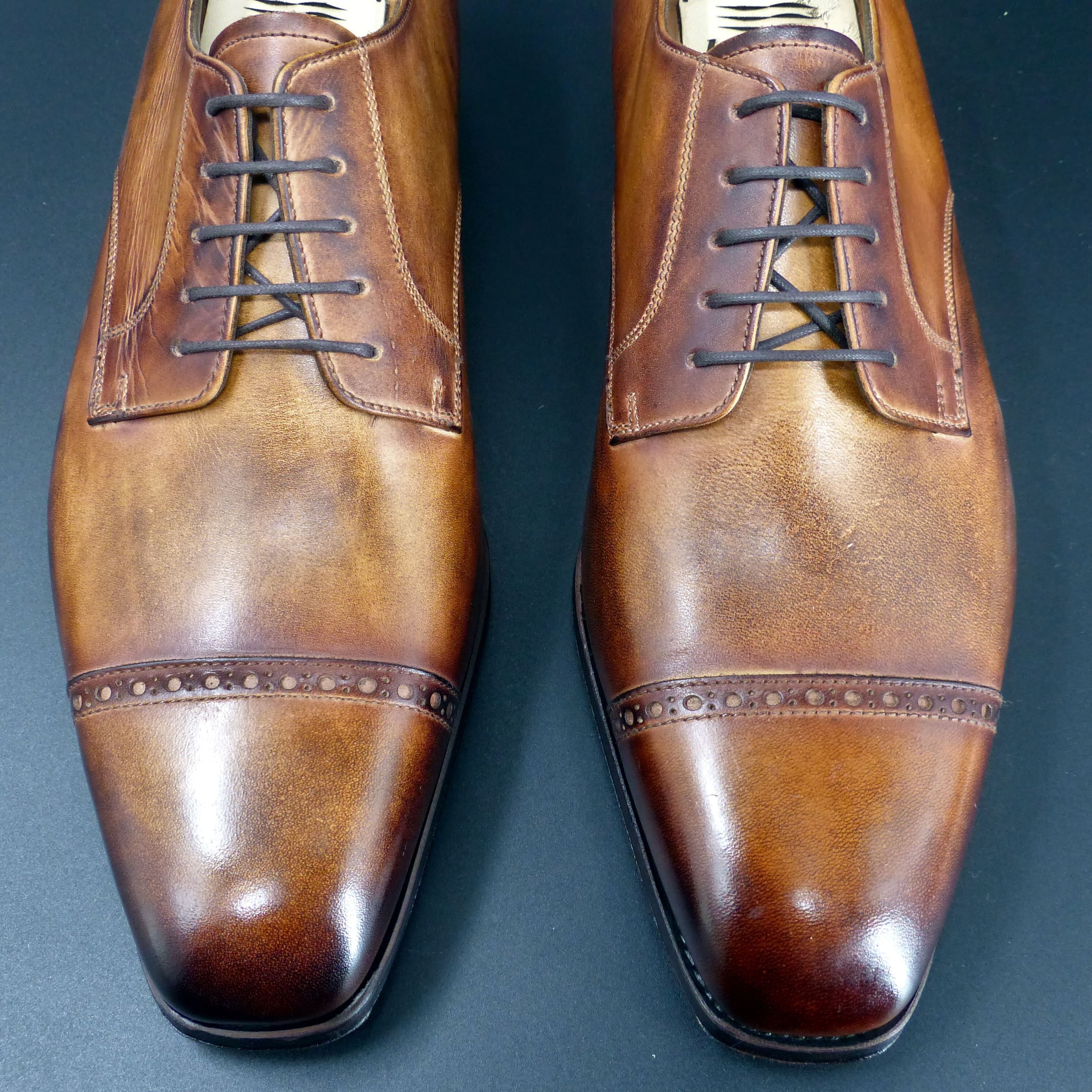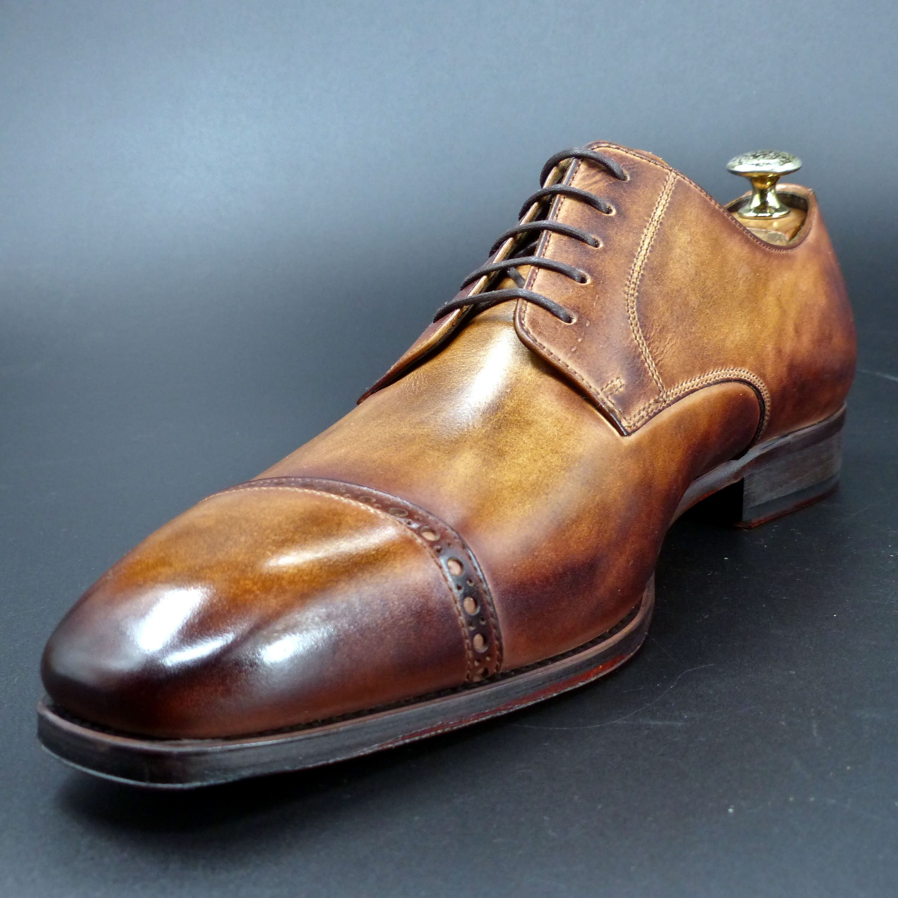 【3Dパターン・フルマッケイ製法】FD-110 25.5cm アンティーク・ブラウン 世界で1足 重ね染めパティーヌ仕上げ パンチドキャップトゥ
