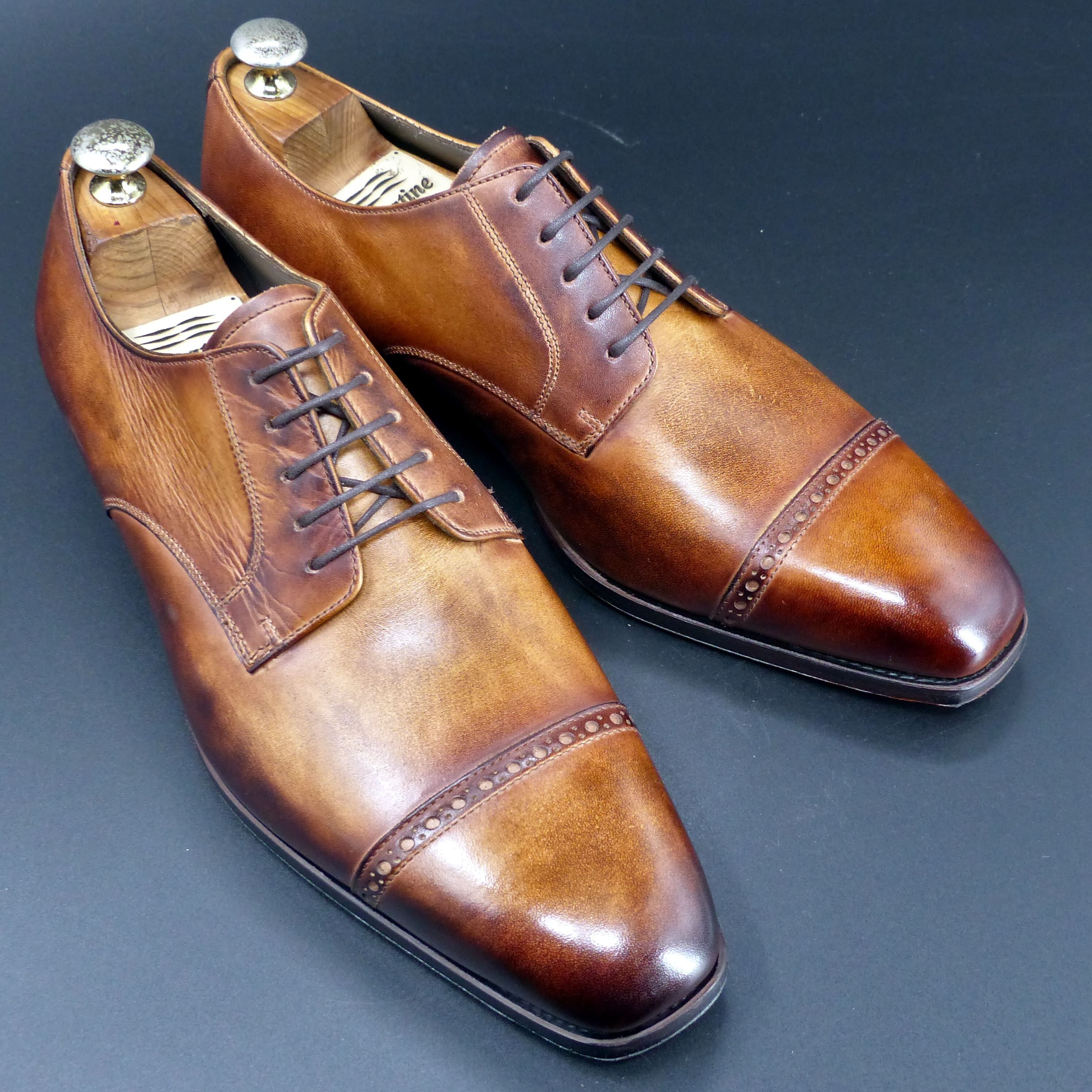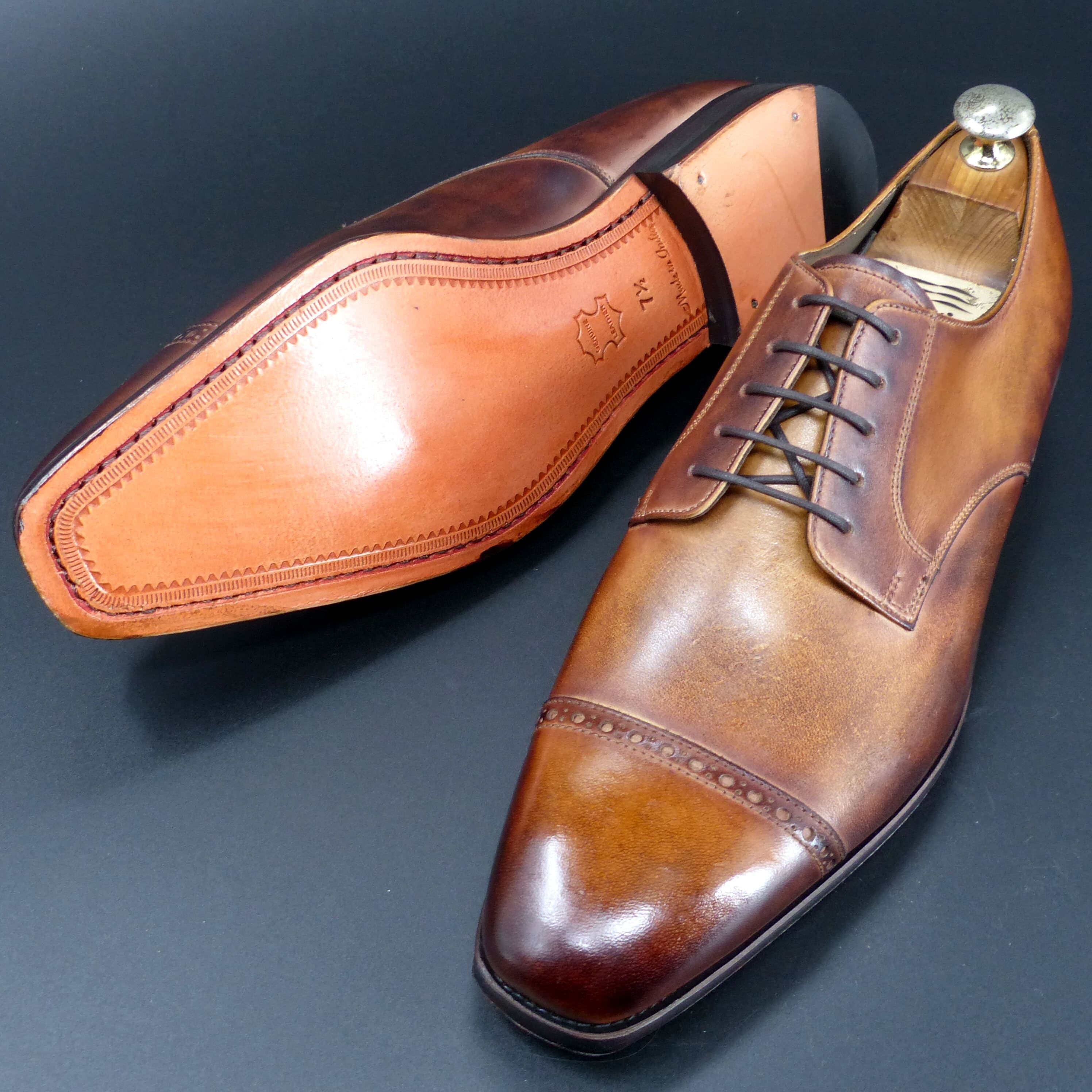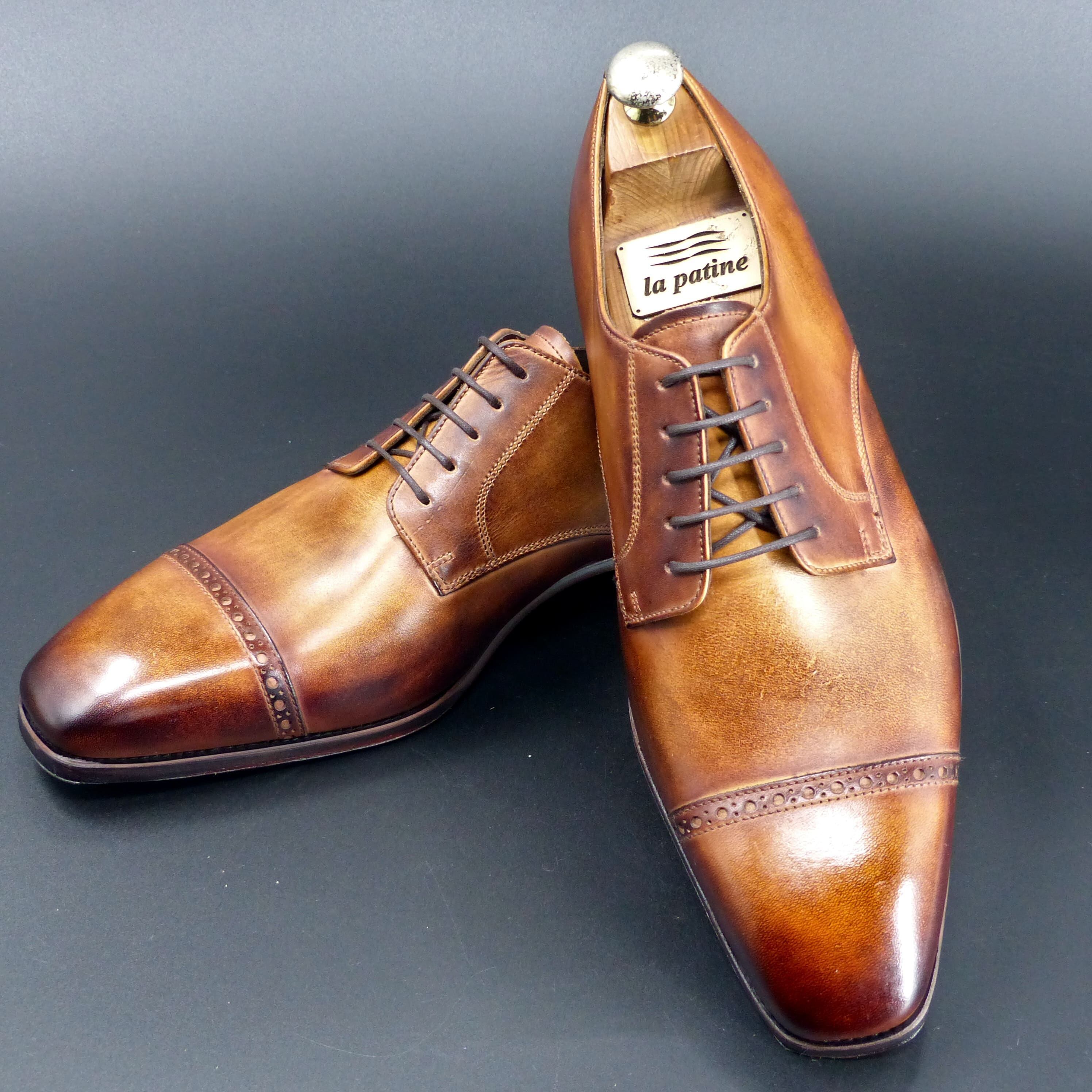 【3Dパターン・フルマッケイ製法】FD-110 25.5cm アンティーク・ブラウン 世界で1足 重ね染めパティーヌ仕上げ パンチドキャップトゥ