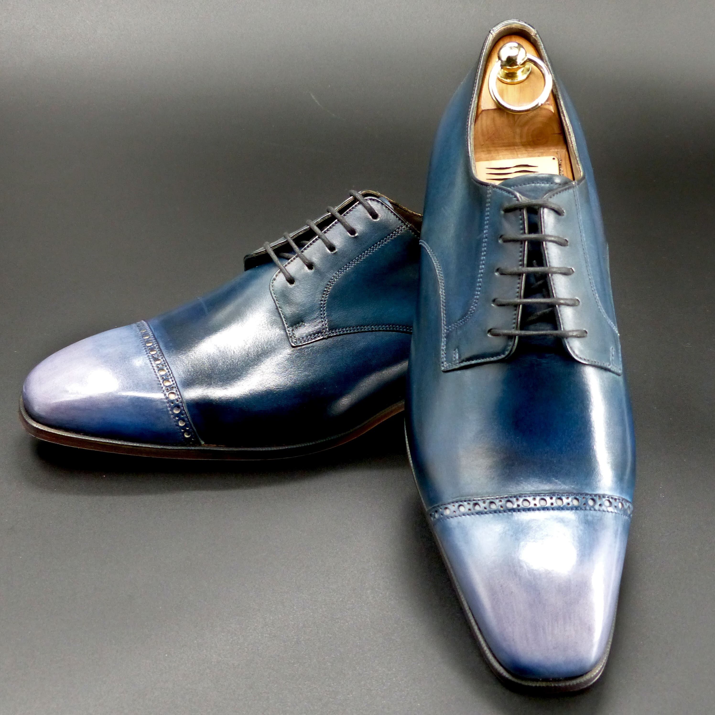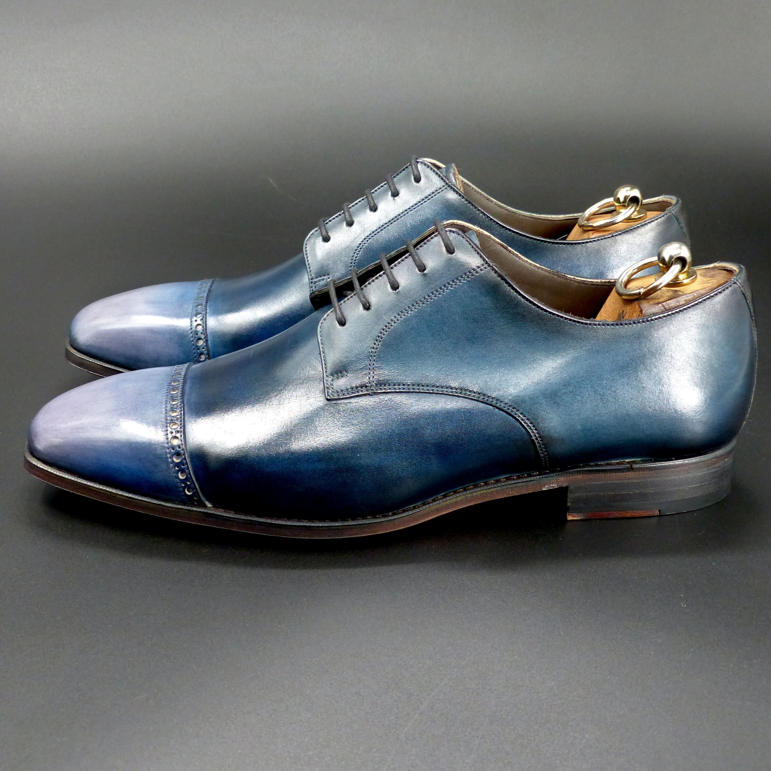 【サンプル・アウトレット】FD-110 270cm ブルー・グリーン 世界で1足 重ね染めパティーヌ仕上げ パンチドキャップトゥ