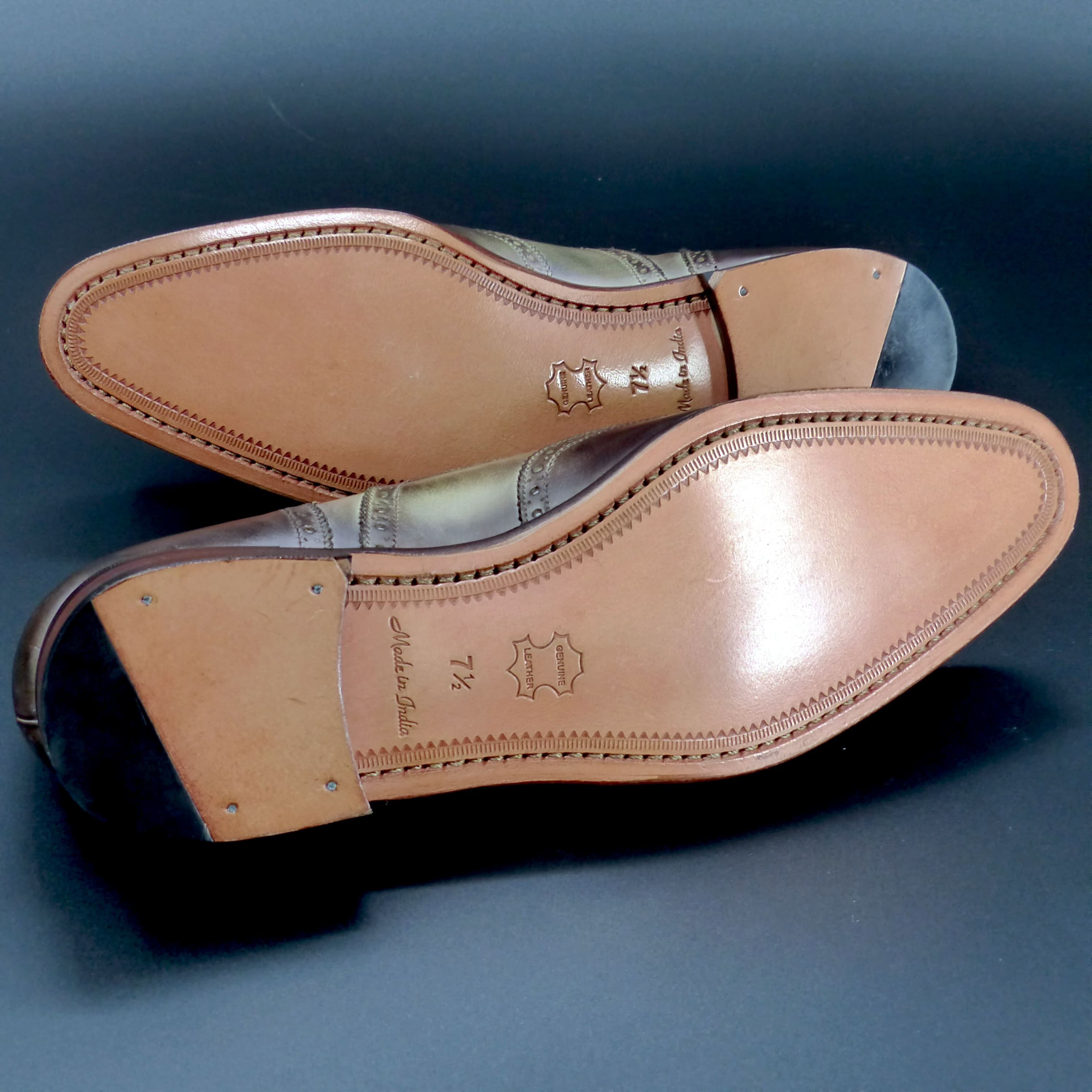 4)シューケア用品を使用する際は、必ず目立たない部分でお試しいただき、その後ご使用ください。また、お客様自身の作業によって生じた色落ちなどについては、弊社では保証できかねますので、ご注意ください。