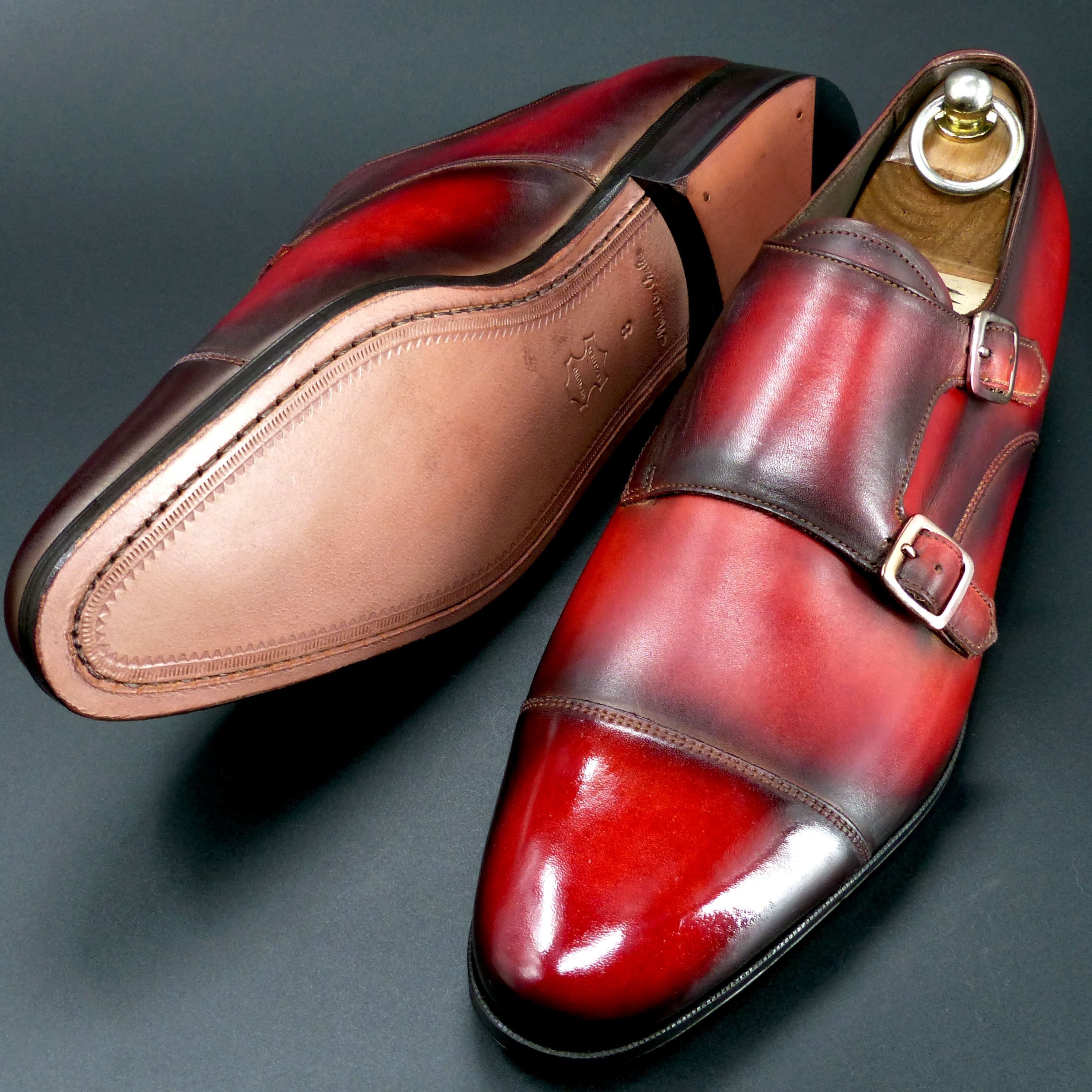 【3Dパターン・フルマッケイ製法】FZ-250 26.0cm 世界で1足 ファイヤー・レッド パティーヌ仕上げ ダブルモンク
